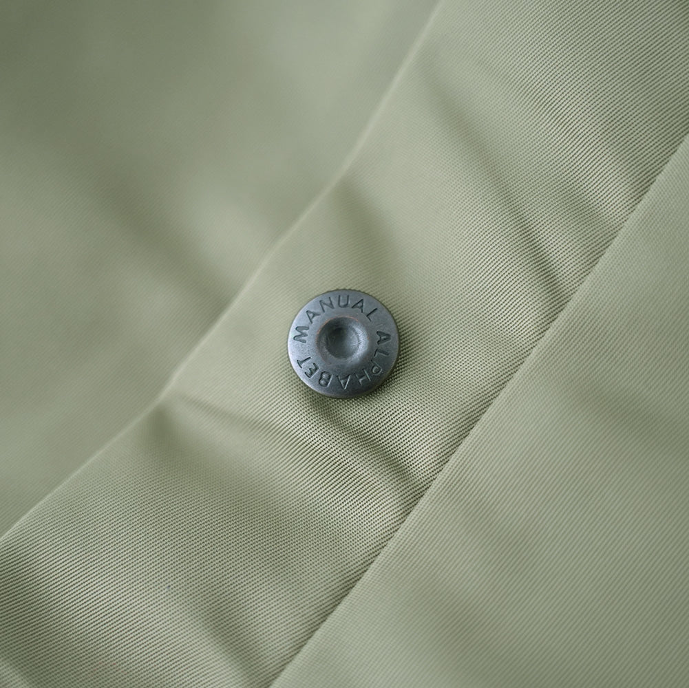 左右ポケットにはMANUAL ALPHABETの刻印入りのスナップボタン仕様。