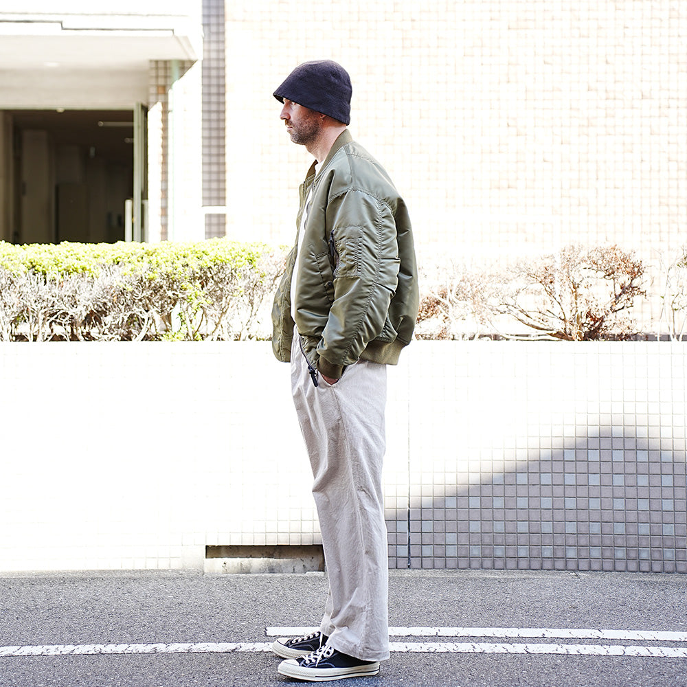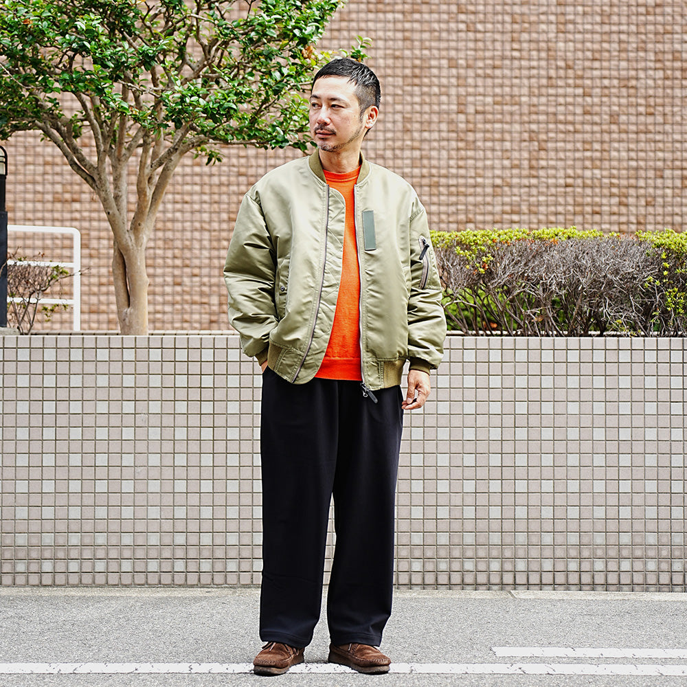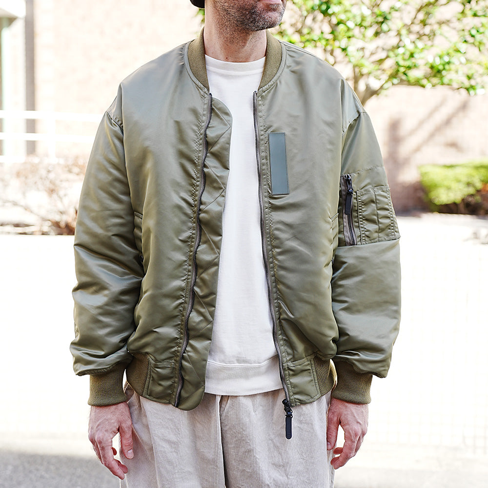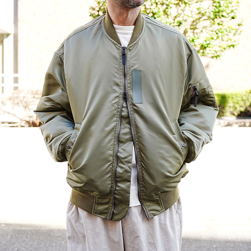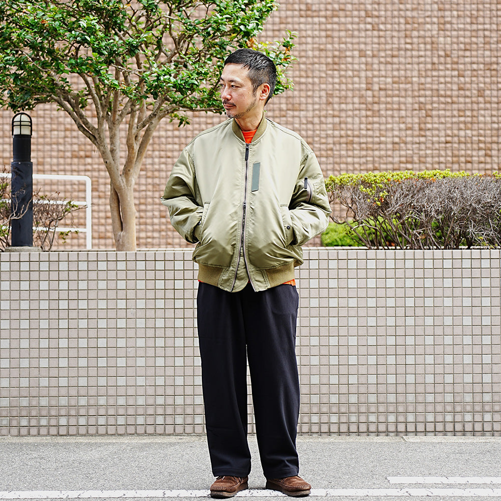 ”MA-1”をベースに、着丈を長めにした抜け感のあるジェンダーレスなスタイル、サイズバランスに仕上げたフライトジャケットです。