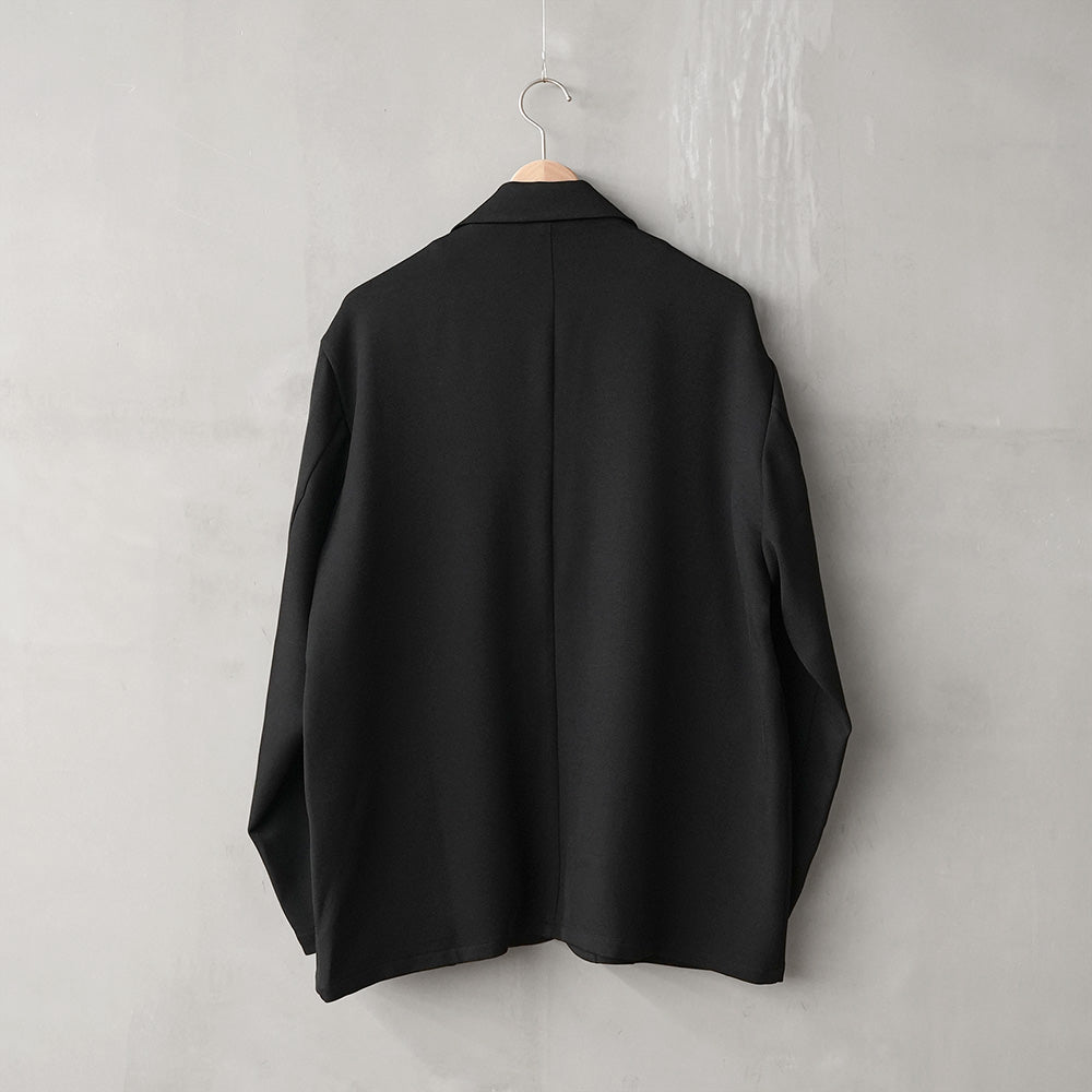 A two-button jacket made from 2-way stretch twill fabric. The fabric is a blend of polyester and polyurethane, offering excellent stretch, high