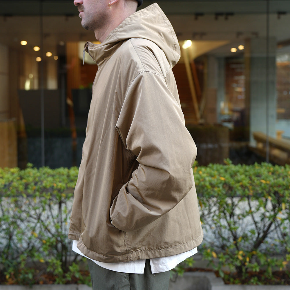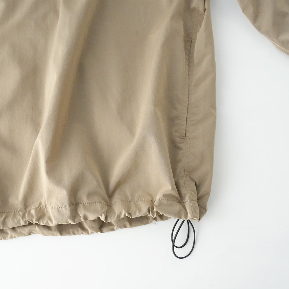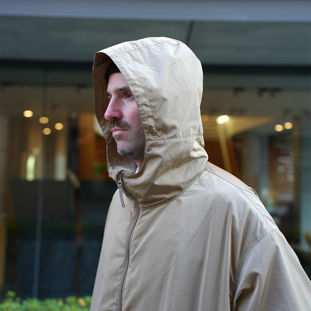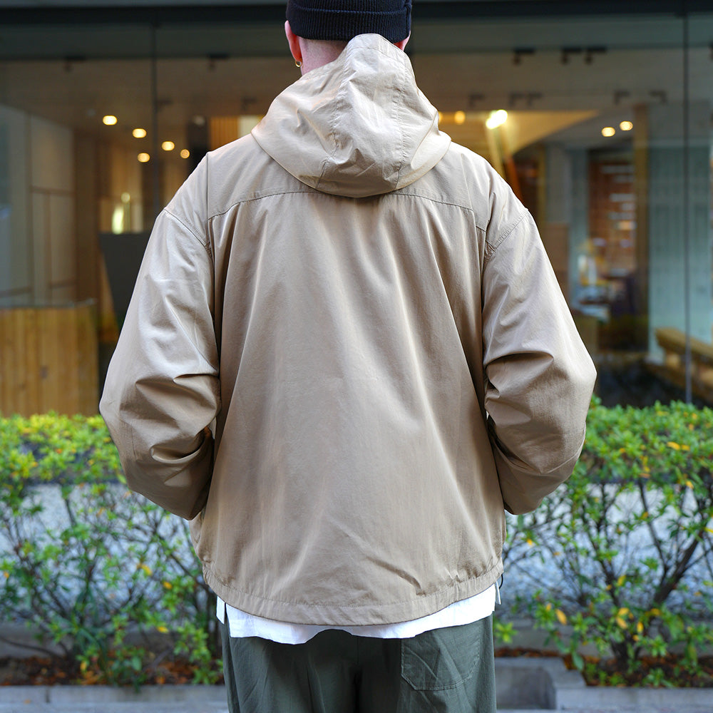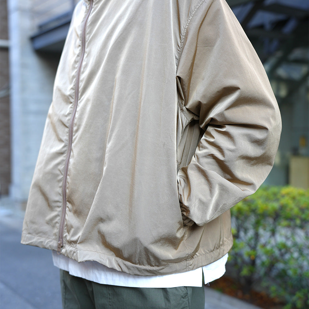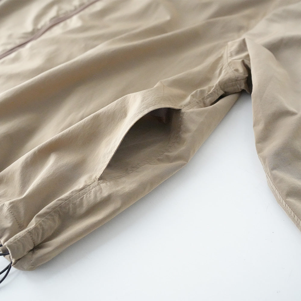 ゆったりとしたシルエットを裾口のドローコードによって調整いただけ、ダブルジップ仕様により着こなし方、着用タイミングの幅が広く、機能性にも優れた気温差の激しい季節にふさわしい万能なフルジップJKTです。