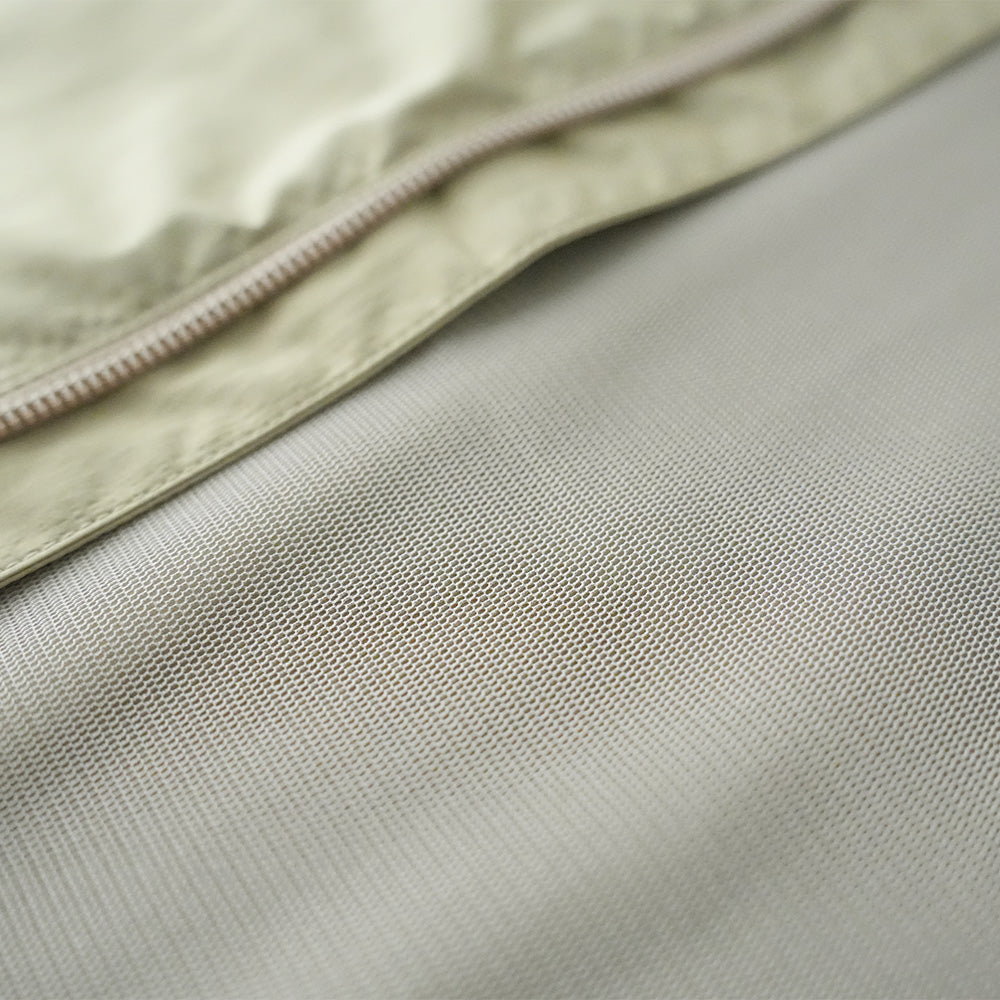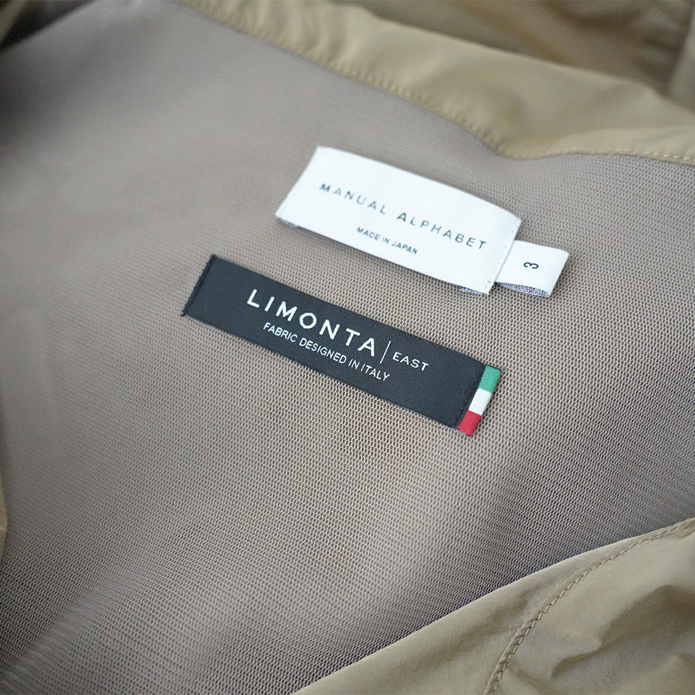 またもちろん見た目だけでなく軽量かつ撥水性、防風性、透湿性があるのに加え洗濯も可能な世界有数のLIMONTA社ならではのハイスペックなナイロン生地です。