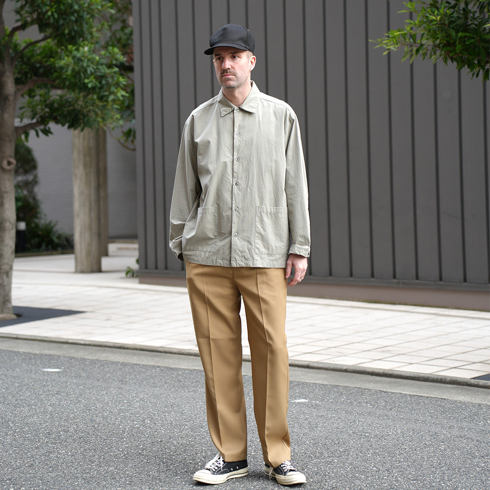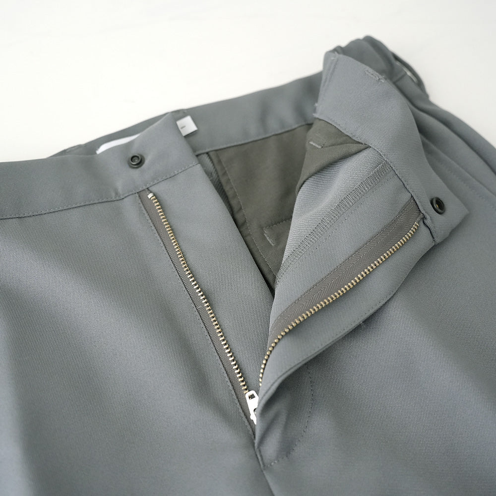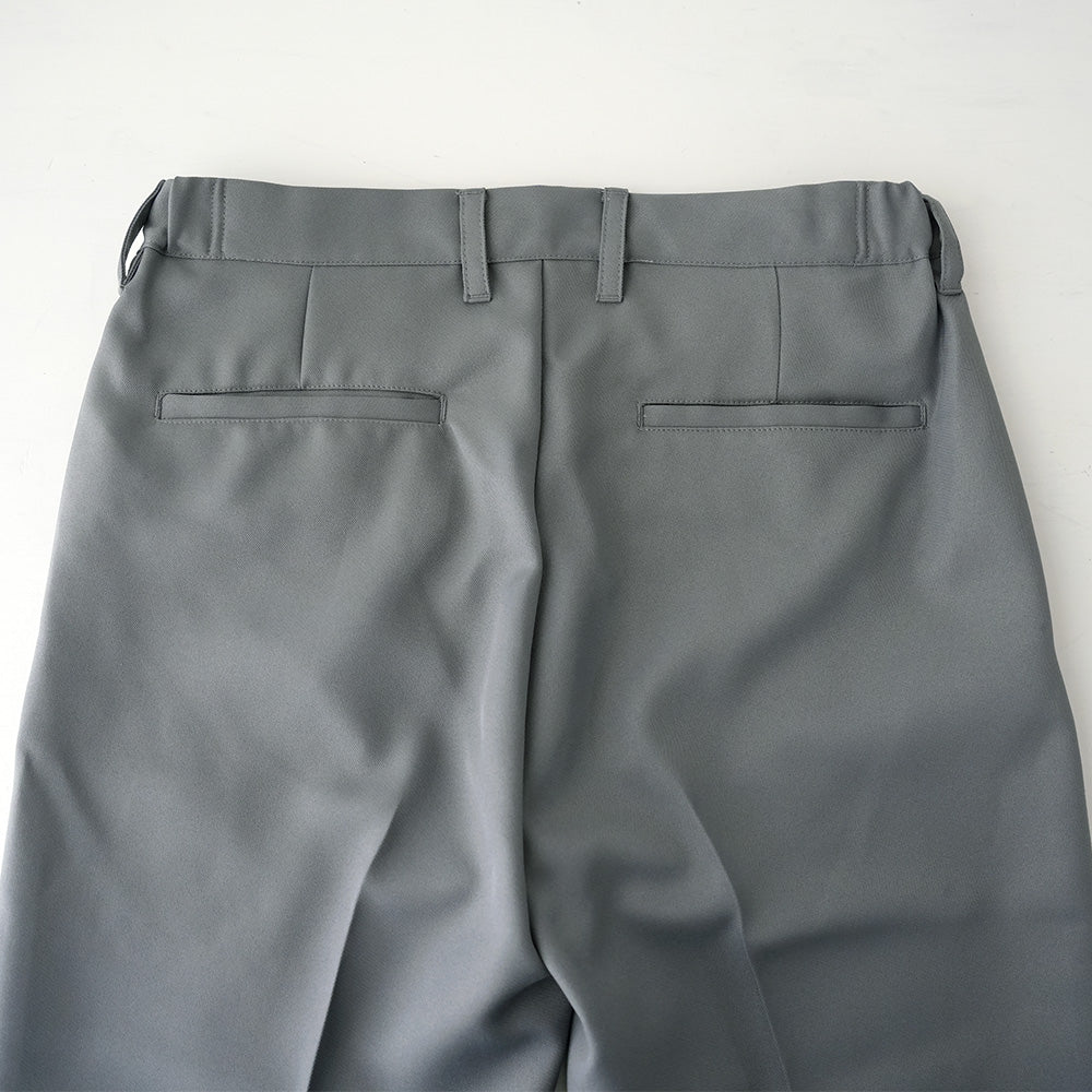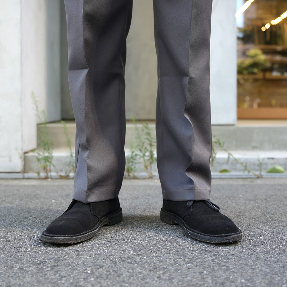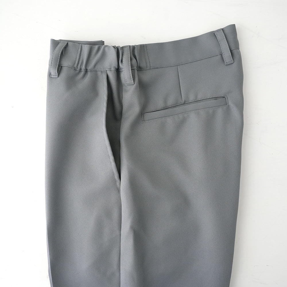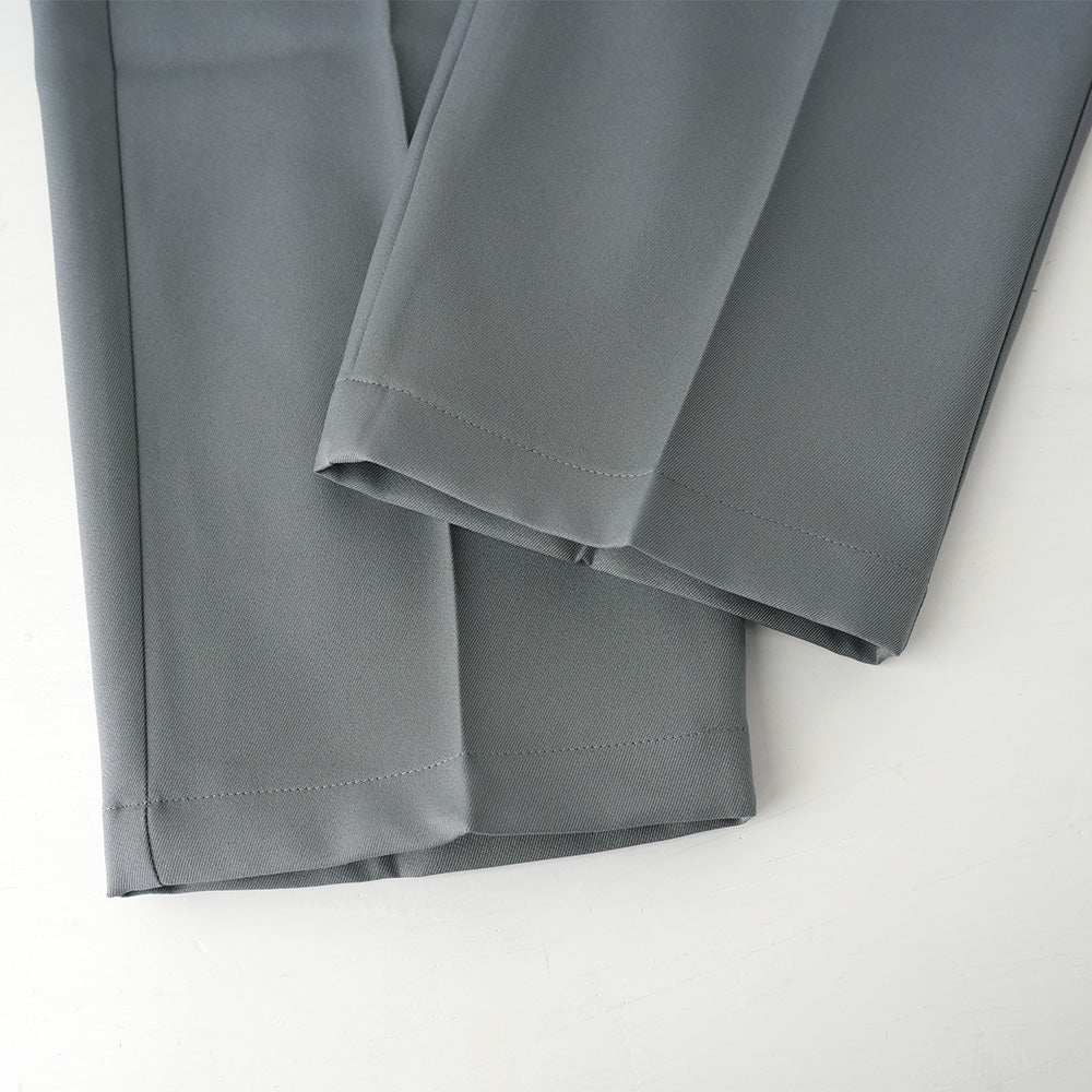 両サイドにゴムを配し、ベルトなしでも着用可能なリラックス感を持ちながら、センタープレス入りでスラックスのような端正な印象に仕上げています。