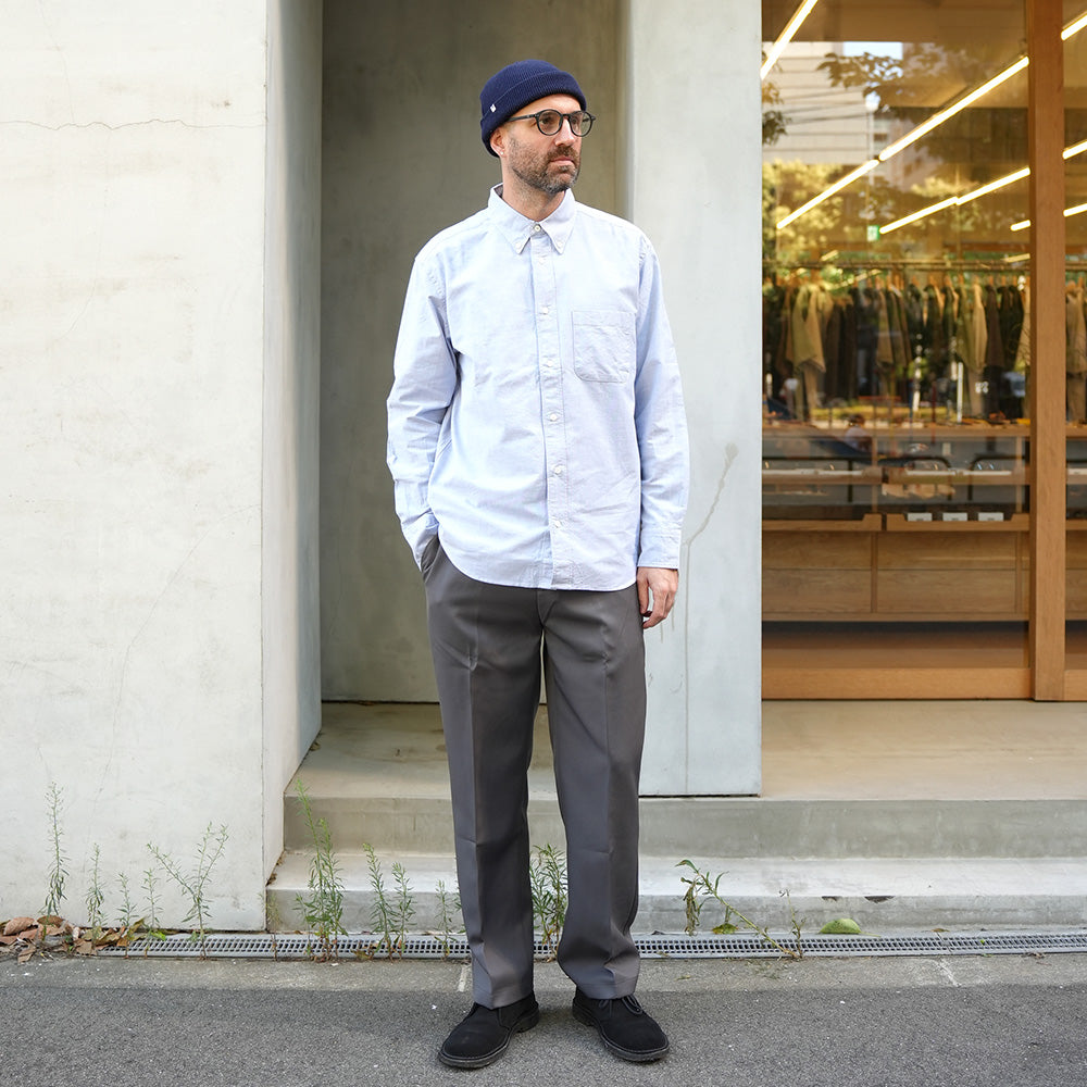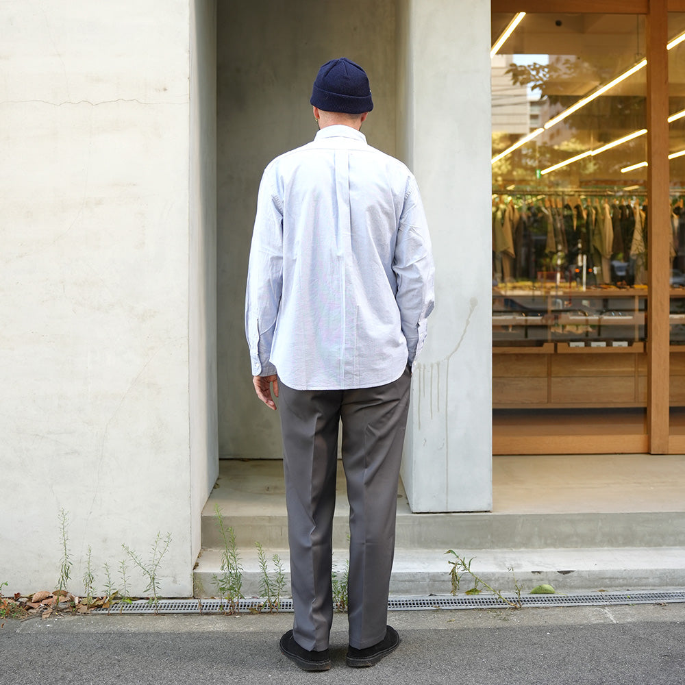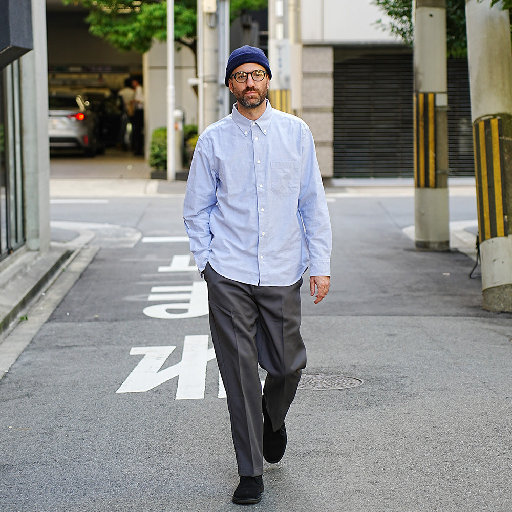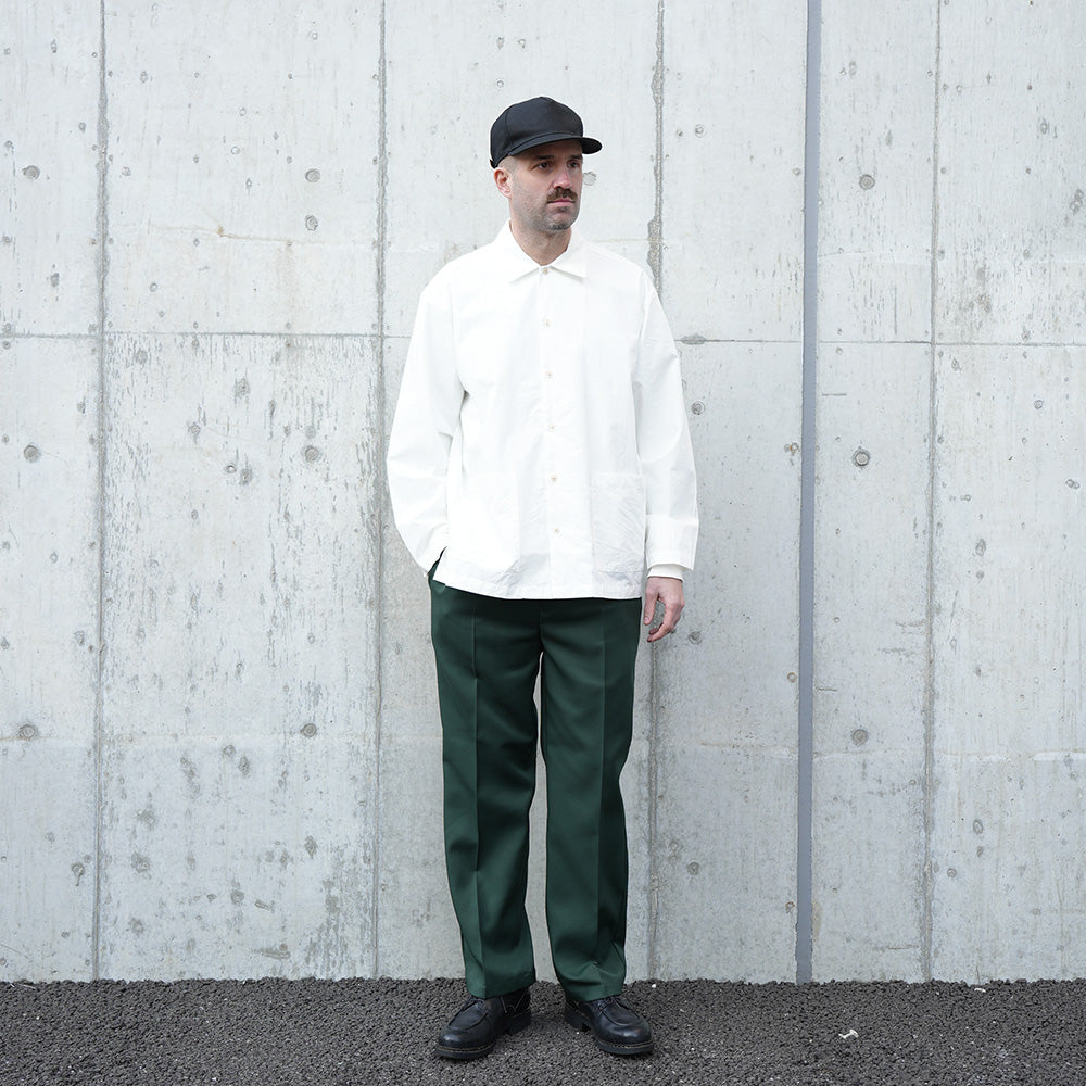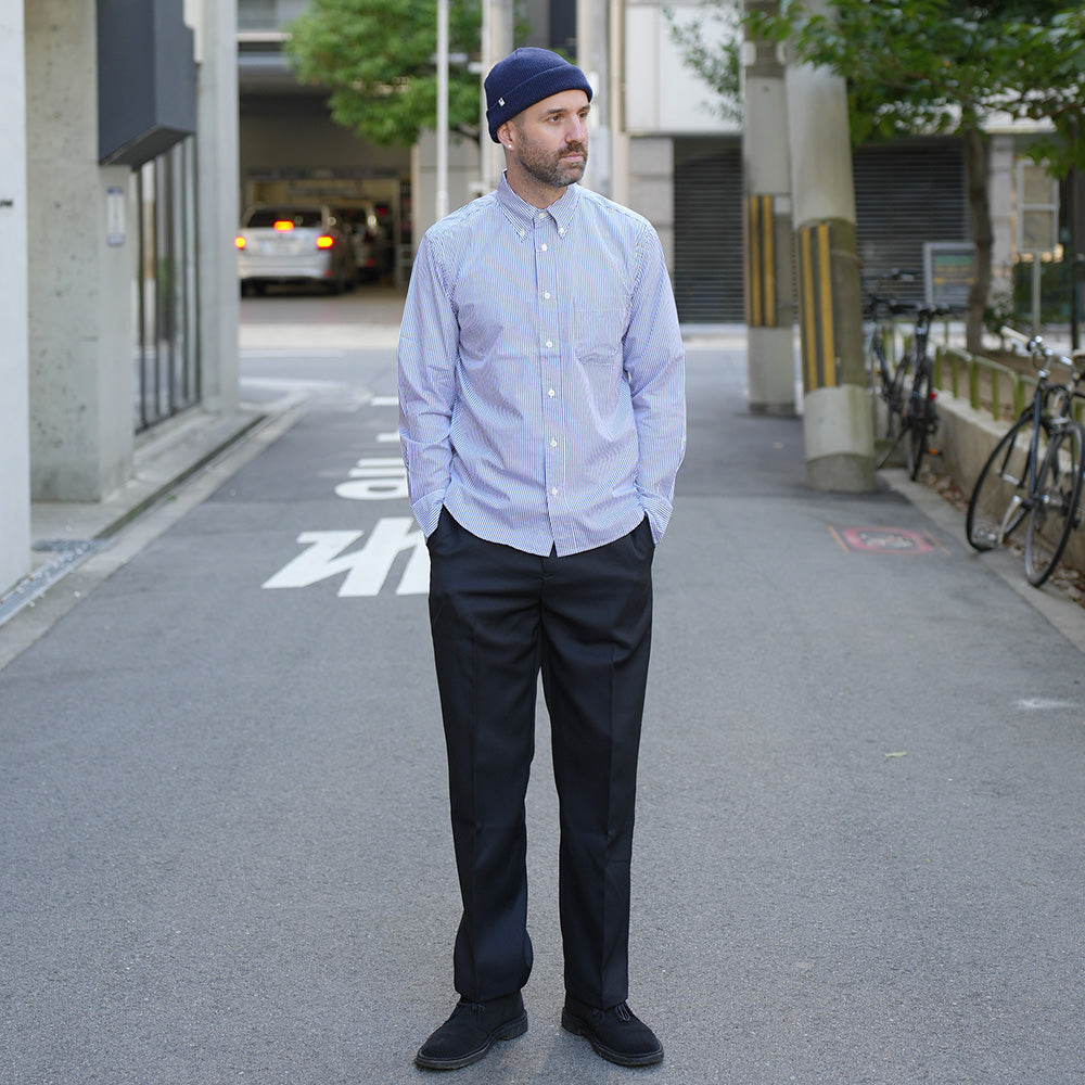 両サイドにゴムを配し、ベルトなしでも着用可能なリラックス感を持ちながら、センタープレス入りでスラックスのような端正な印象に仕上げています。