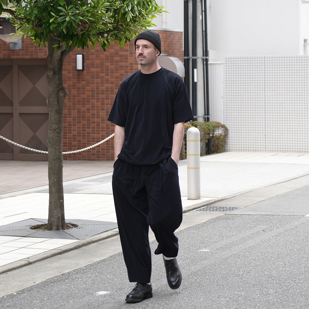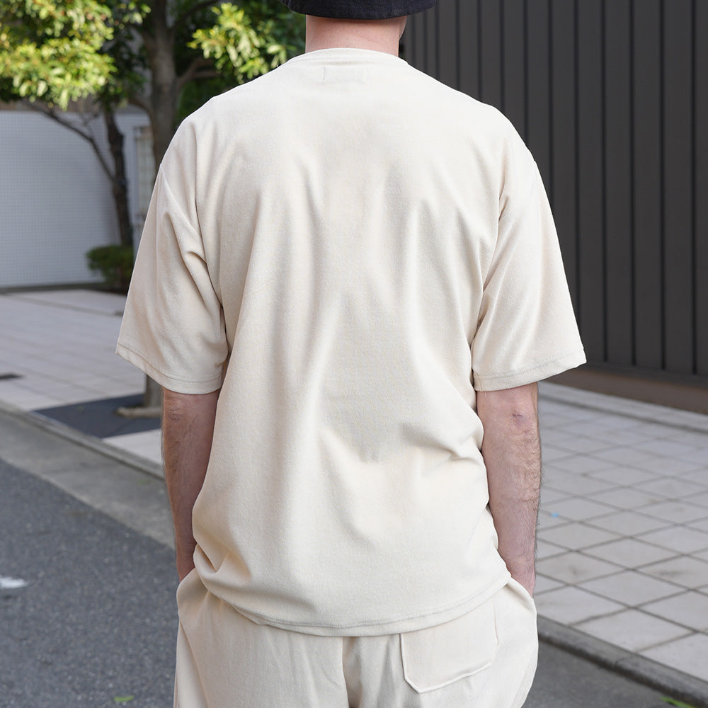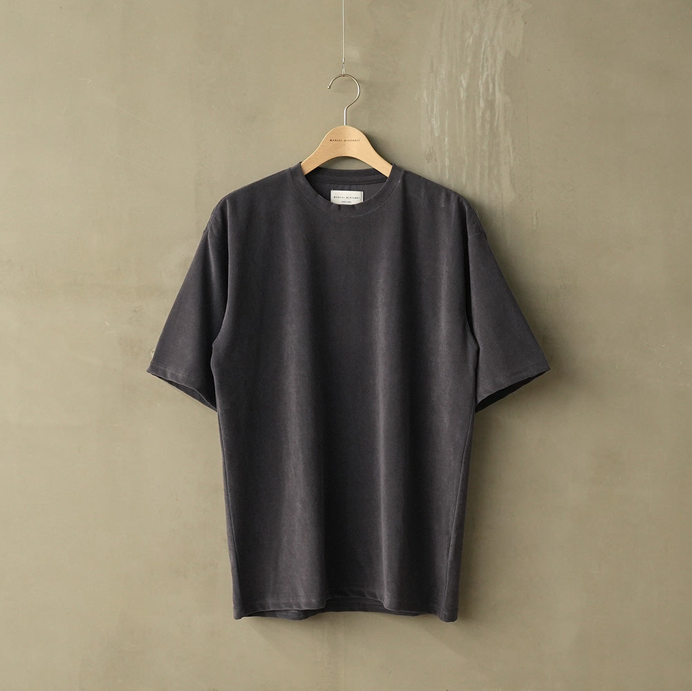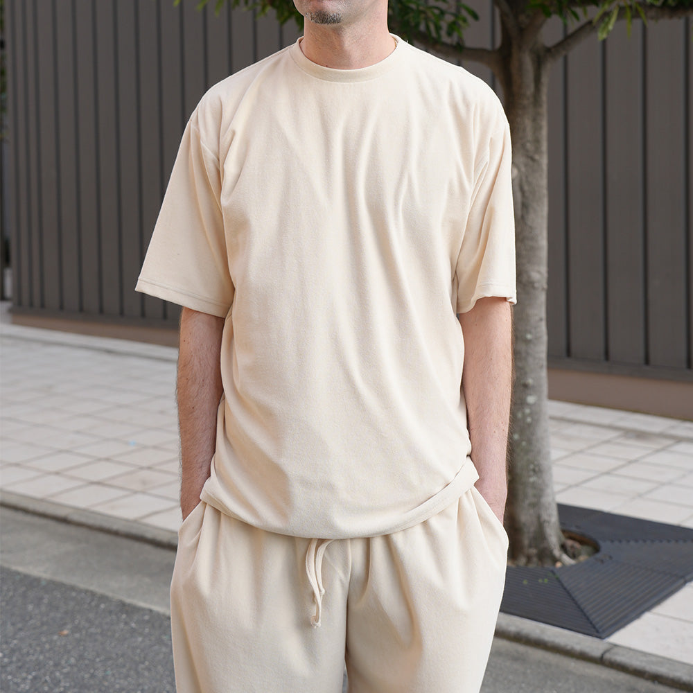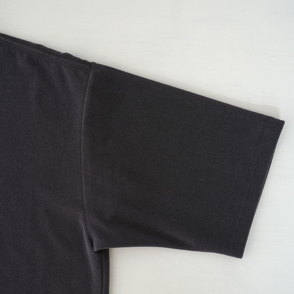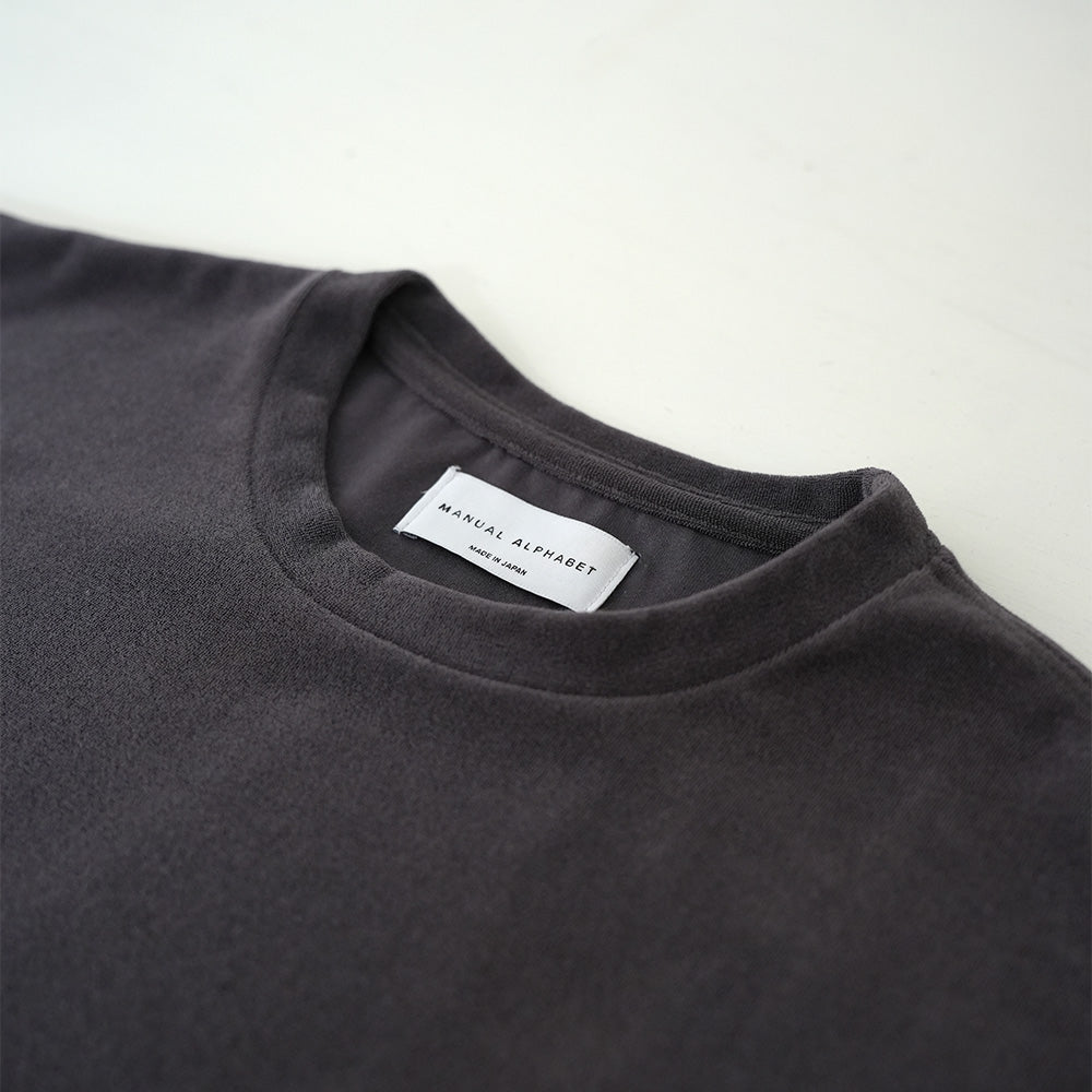 コンパクトに編みたてられたハイゲージのパイル生地を使用した半袖カットソー。