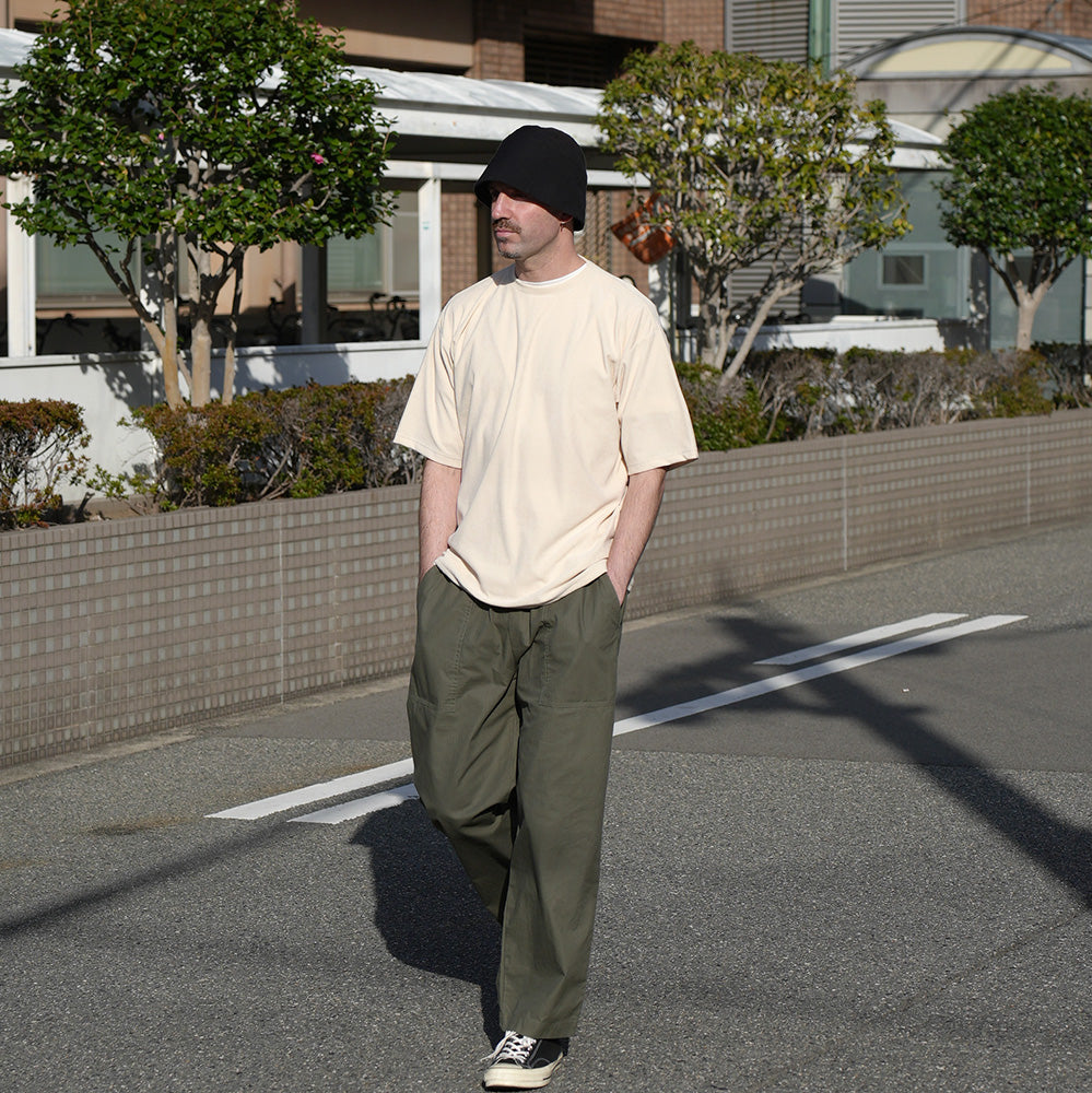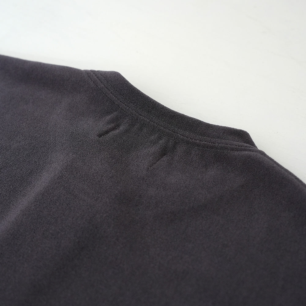 上品な生地の表面感を活かしたシンプルなディテールとオーソドックスなサイズ感のデザインでどんなスタイルにも合わせやすくも1枚でも高級感と存在感があるカットソーです。