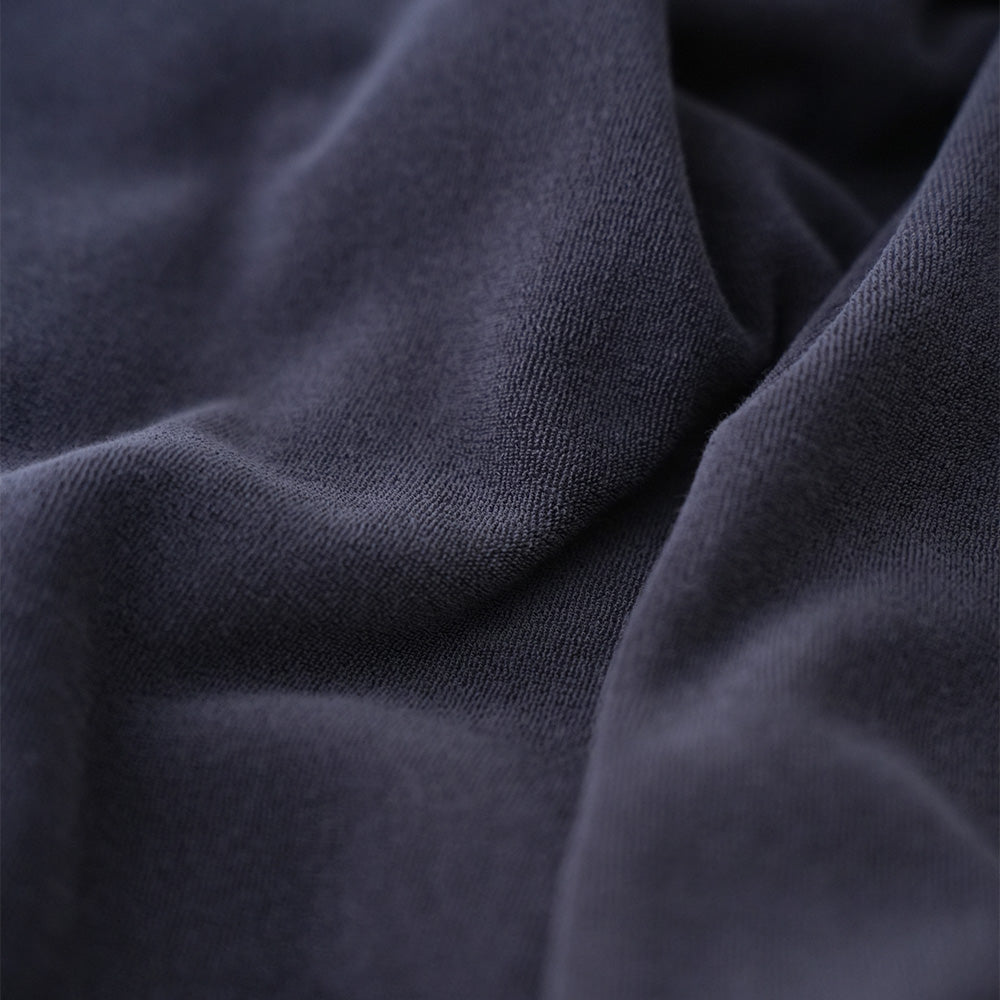 寝具向けの編み機特性を活かし、従来のパイル生地よりハイゲージでコンパクトに編みたてられた上質のパイル生地を使用。