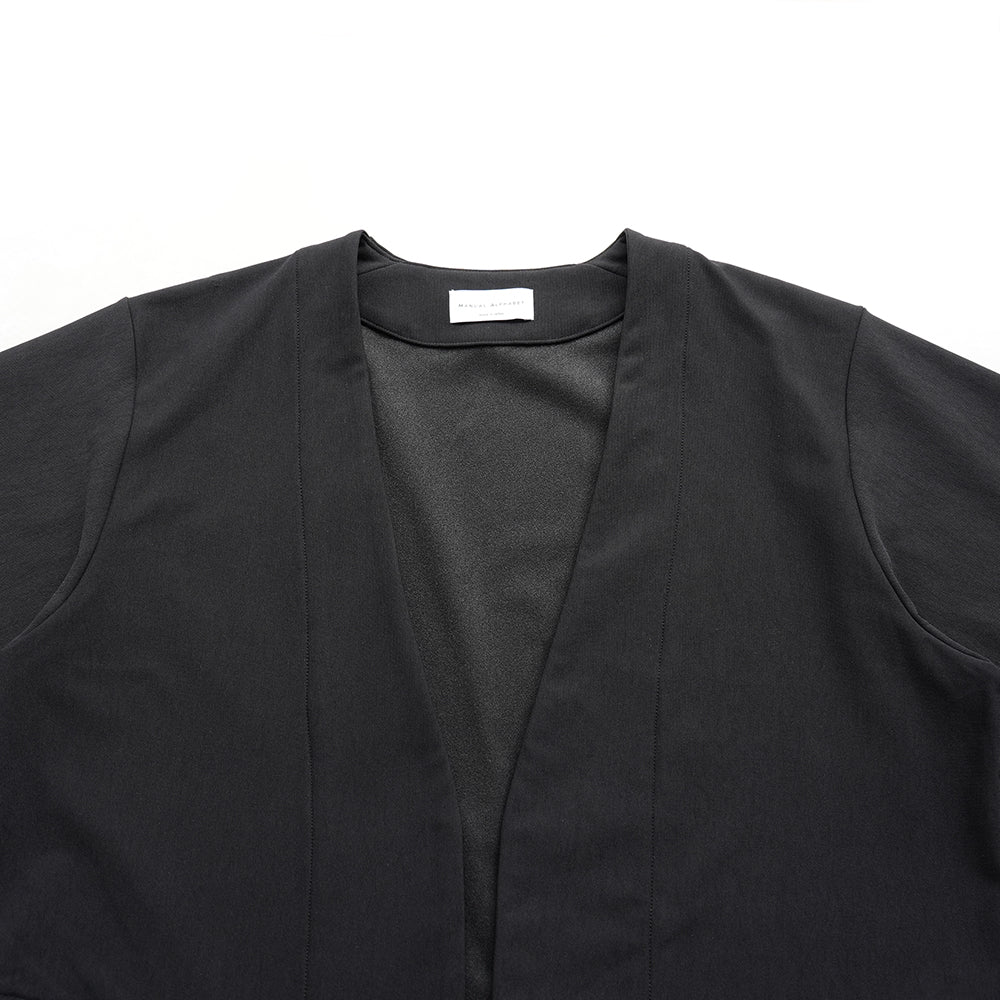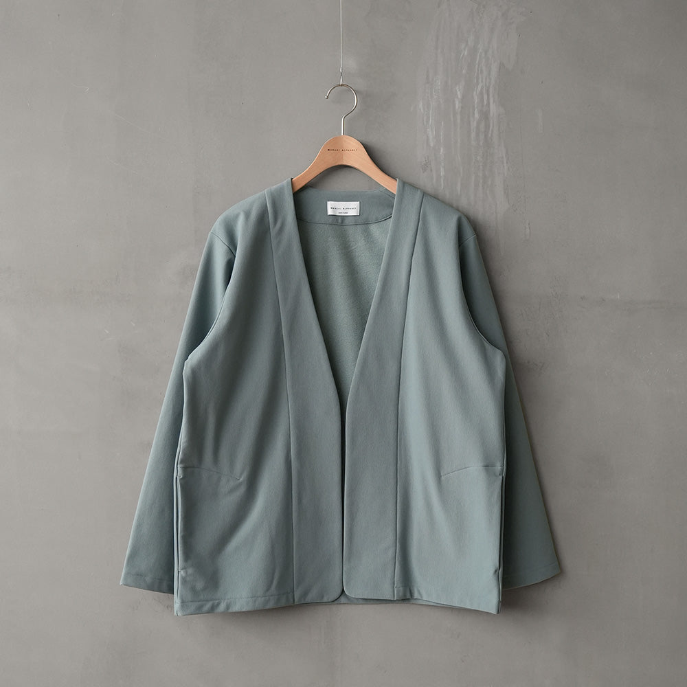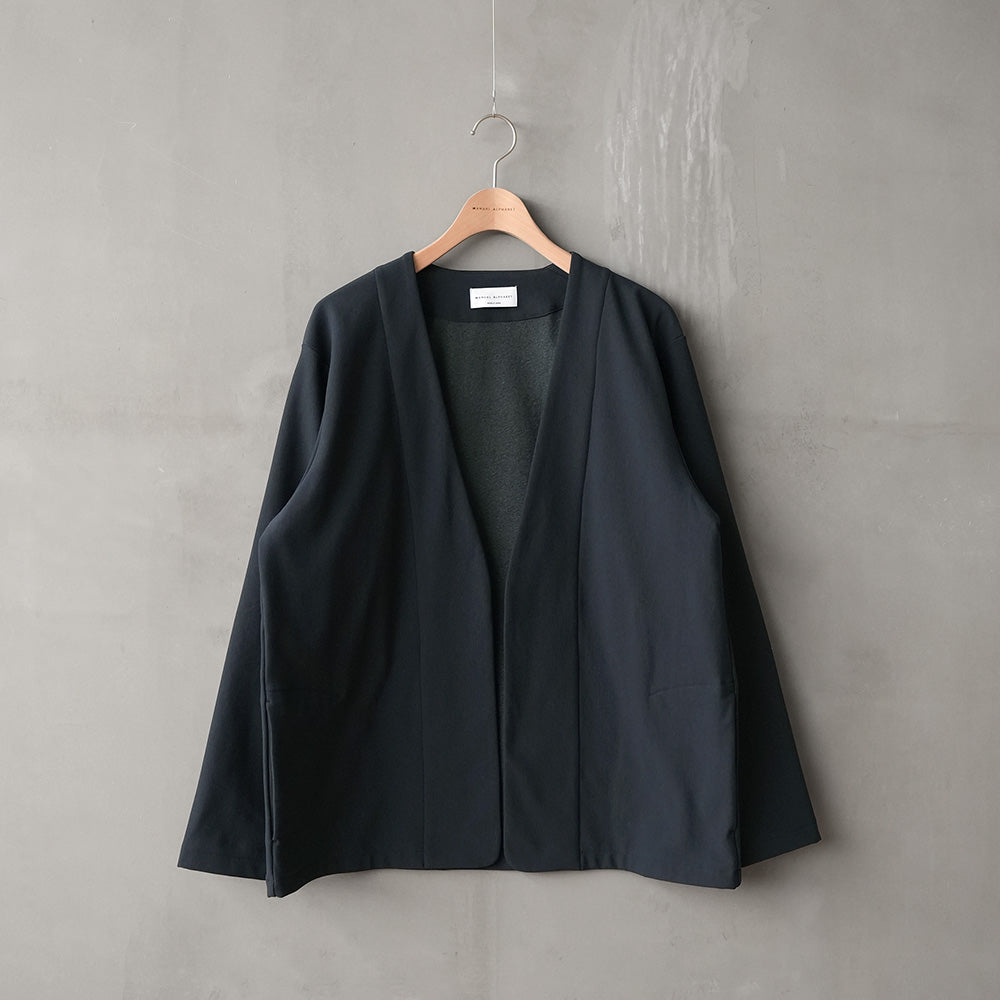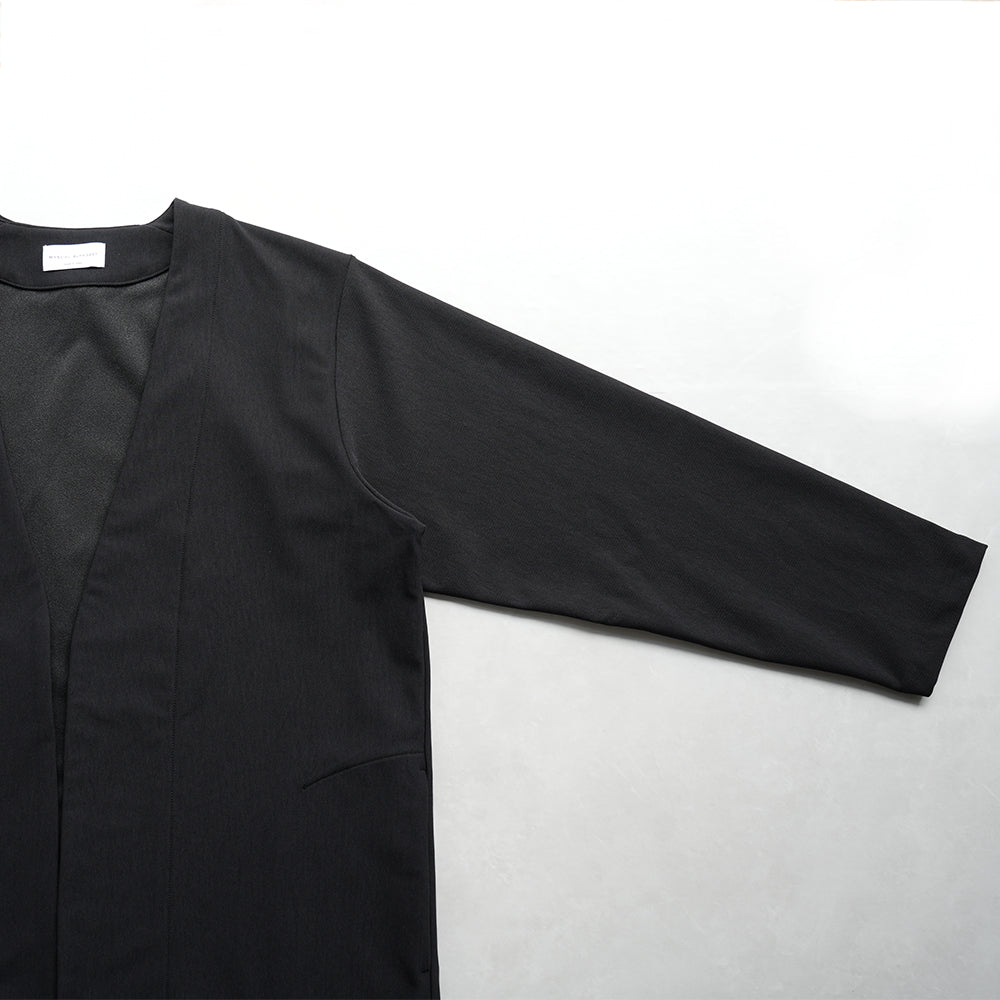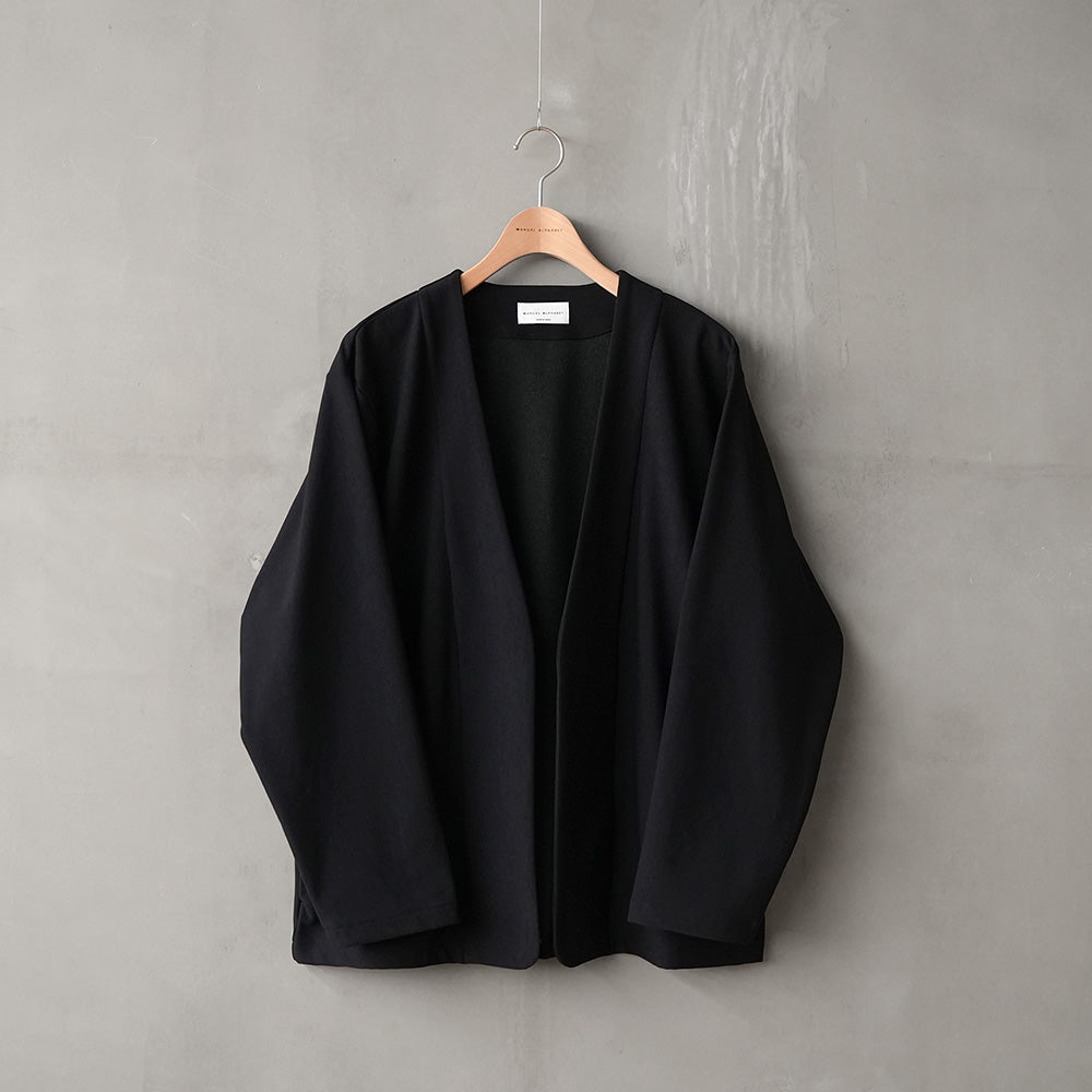 留めのないノーカラーの羽織りのデザインがゆとりのある身幅と相まって大人っぽさとリラックス感を持ち合わせています。