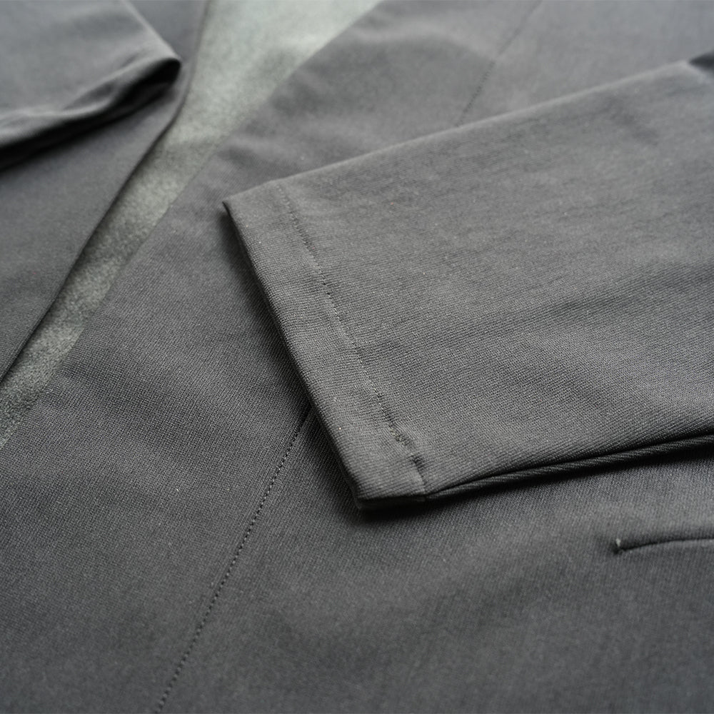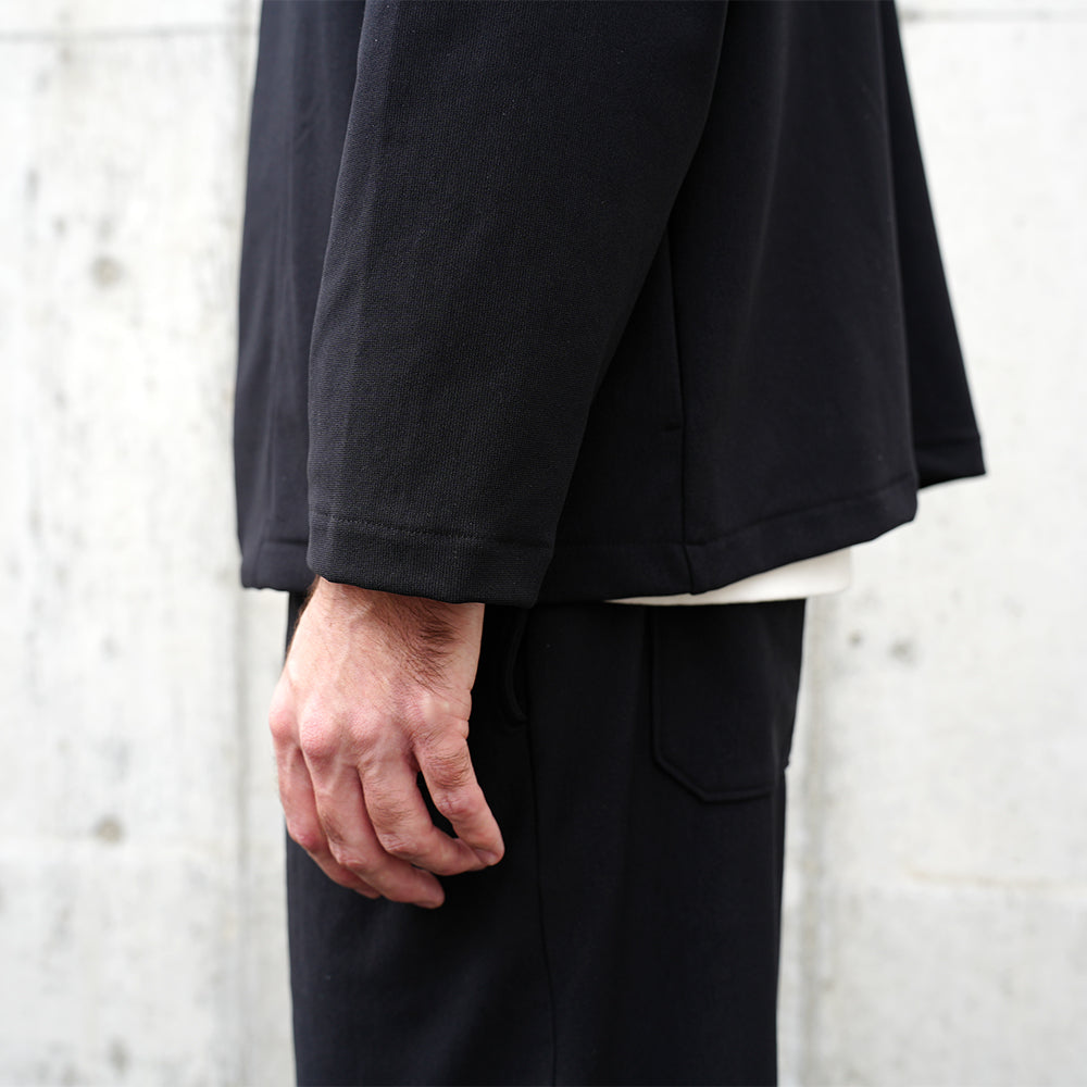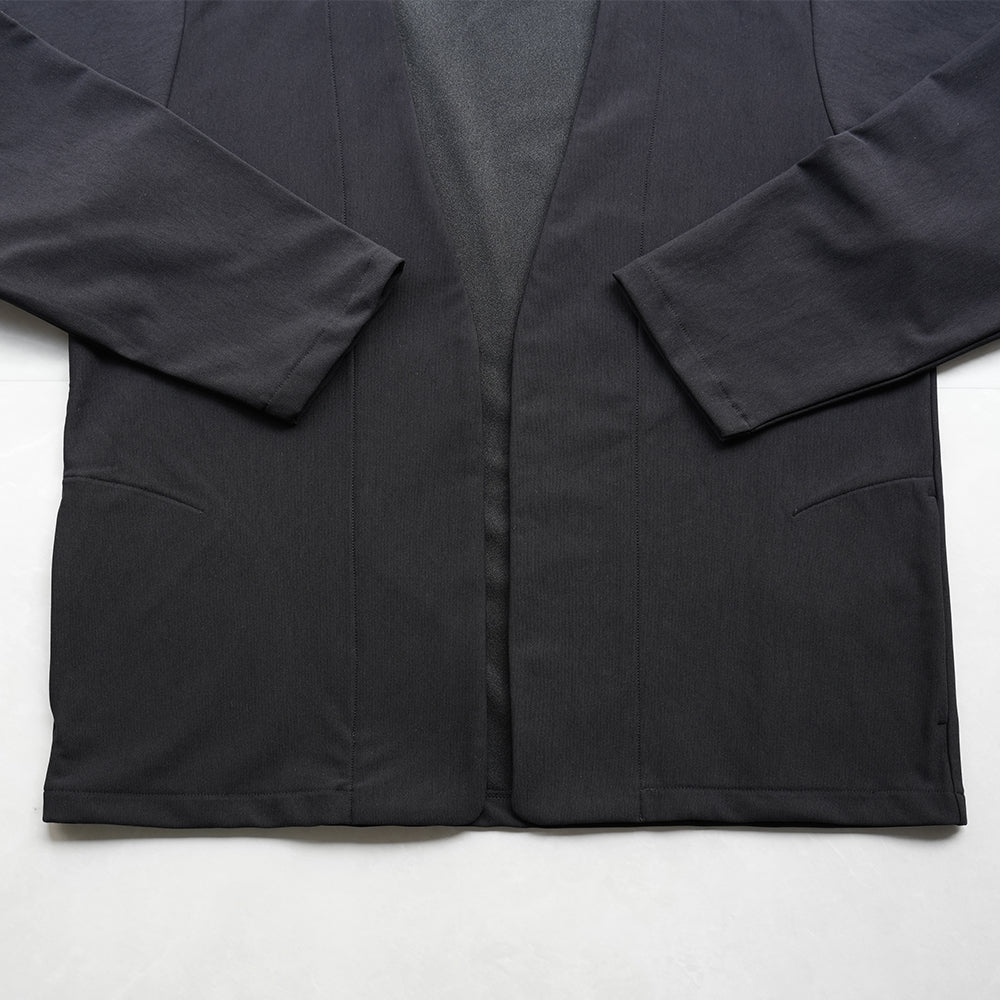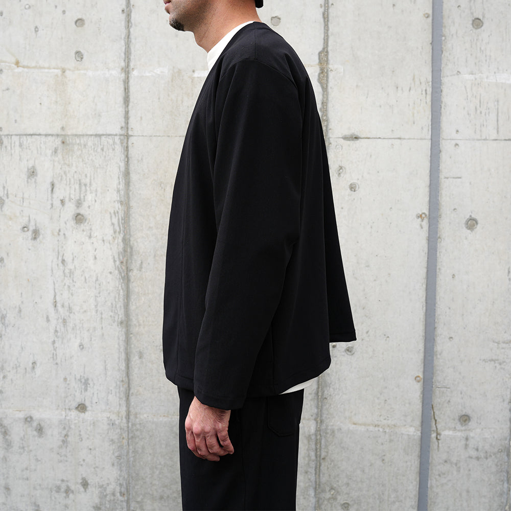 発熱する特殊な機能ジャージー素材LEOTHERMO®を使用した裏起毛ジャージー素材のカーディガン。