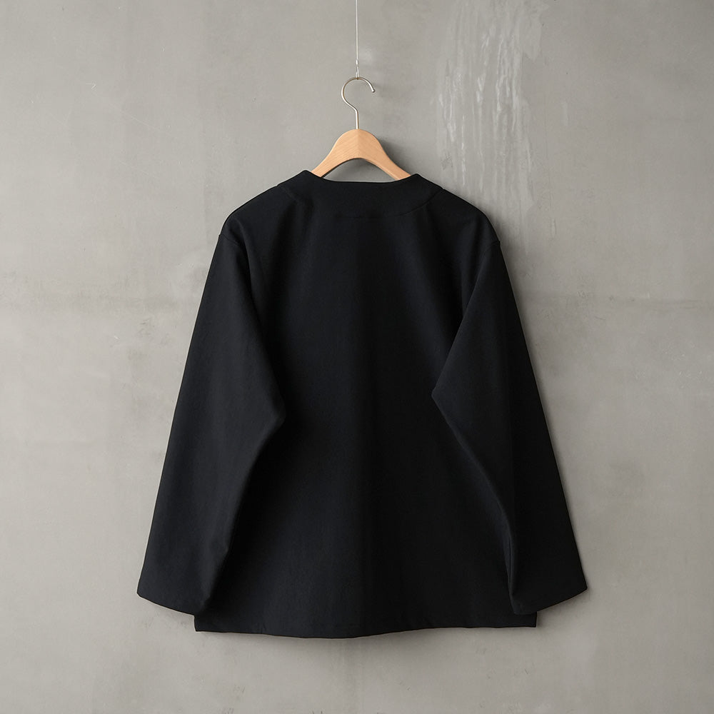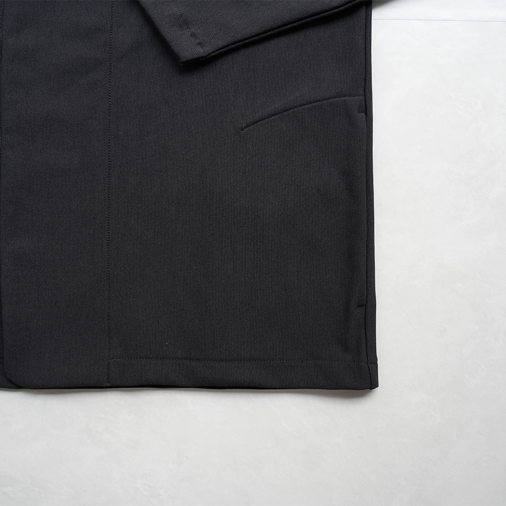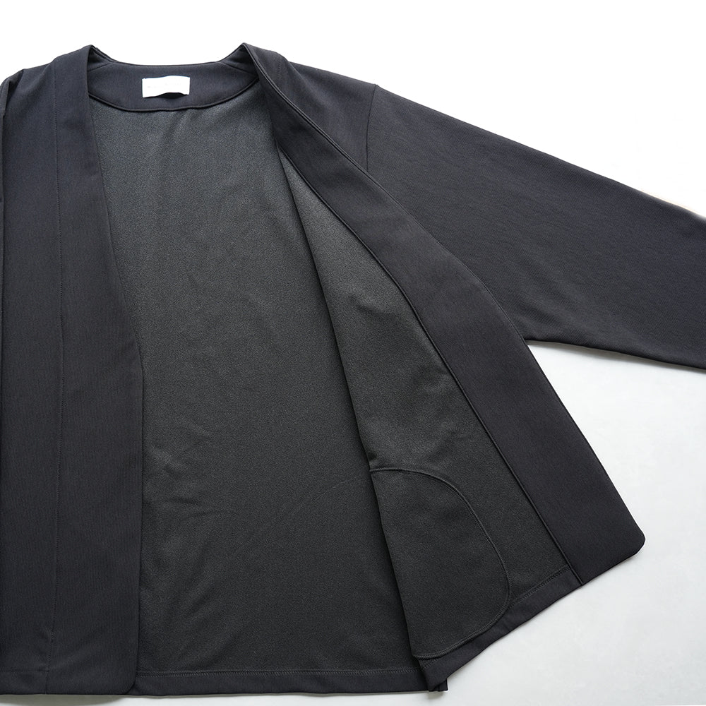 A cardigan made of brushed jersey material using LEOTHERMO®, a special functional jersey material that generates heat. The functional