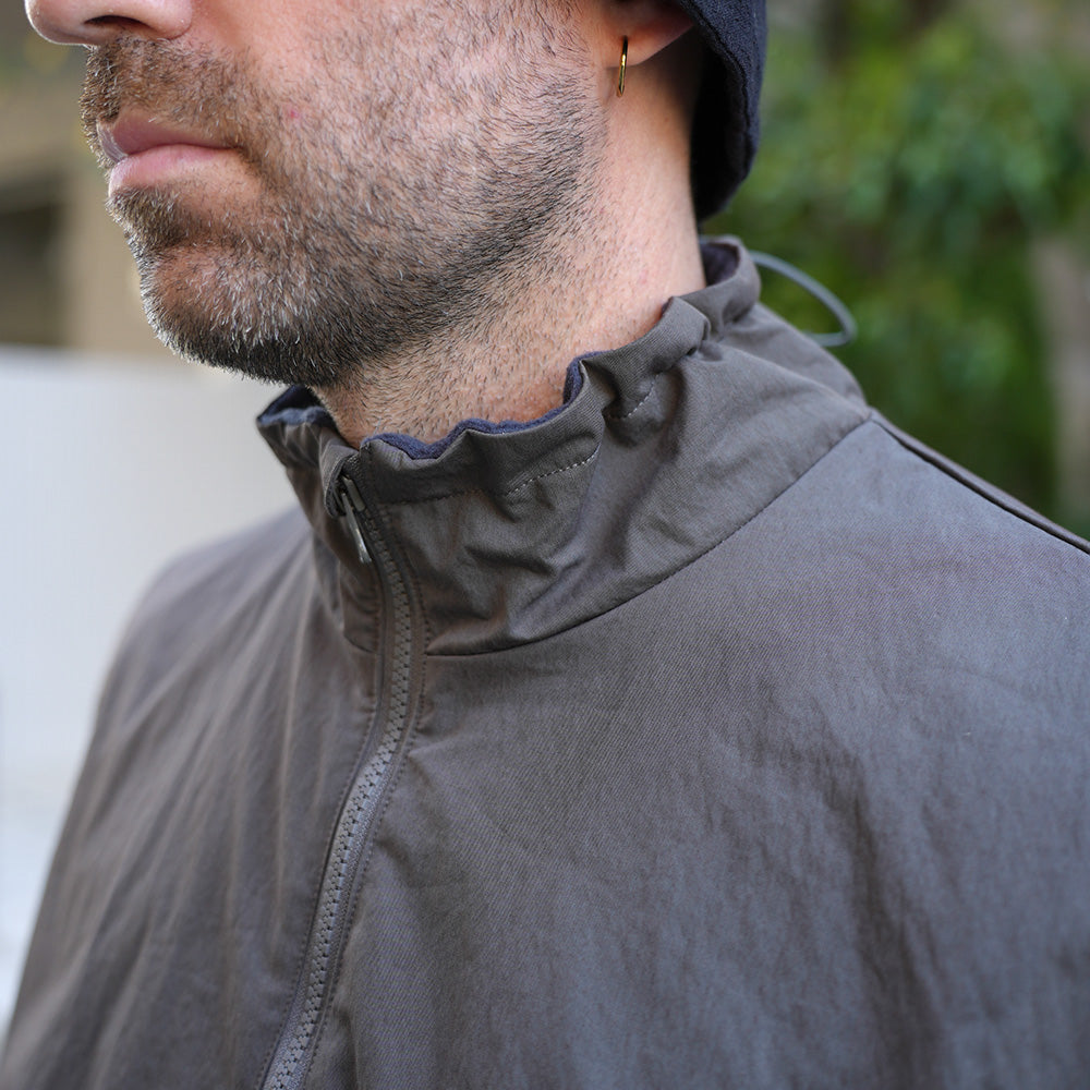 表地はシャリっとした綿ナイロンの高密度ツイルで、ワッシャー加工によりシボ感がある表面がポイントです。