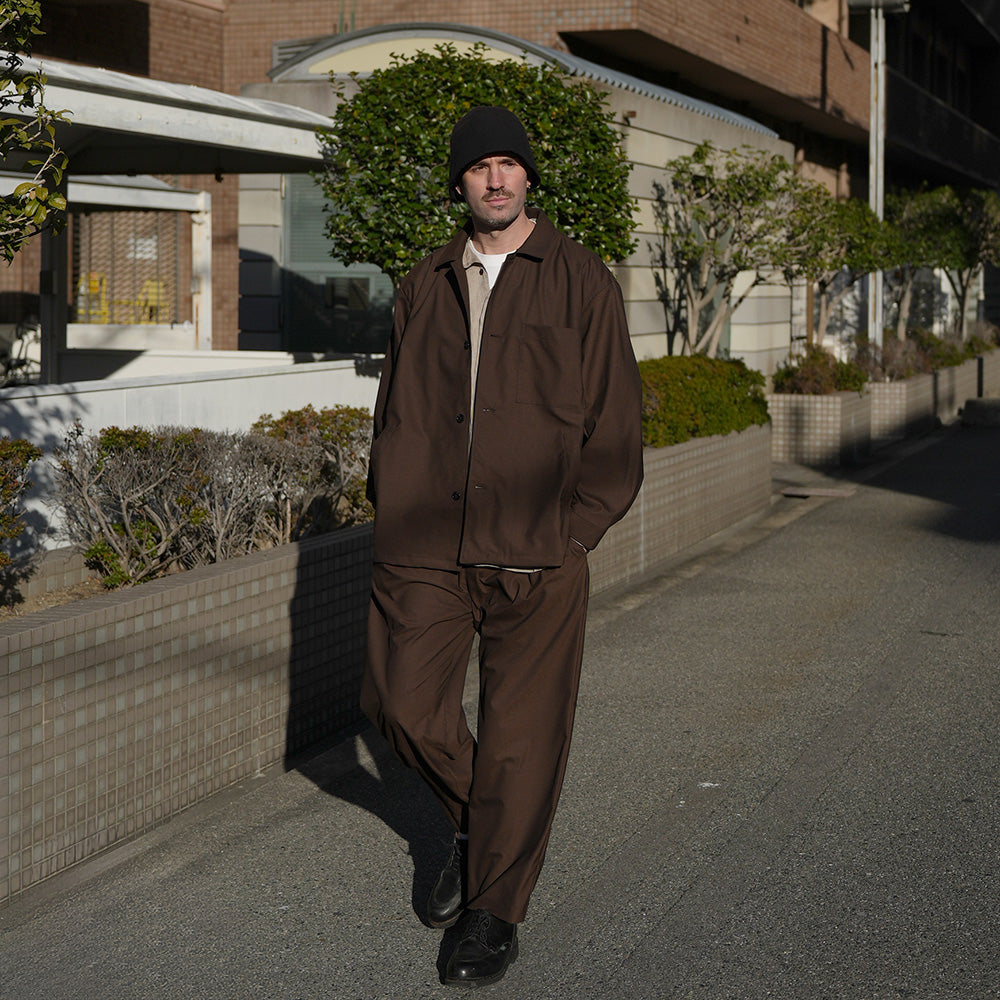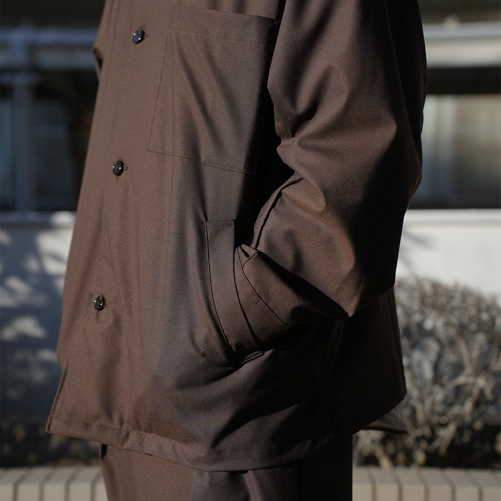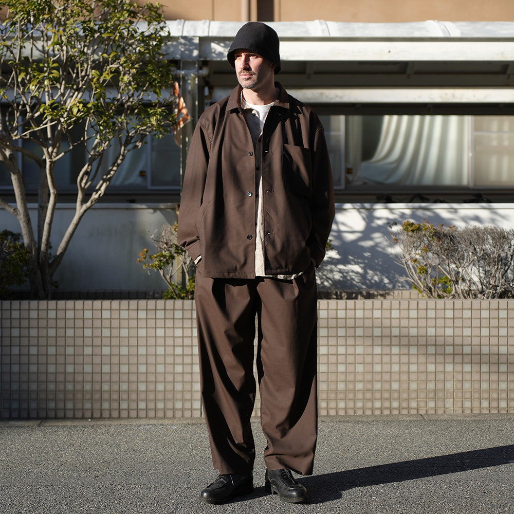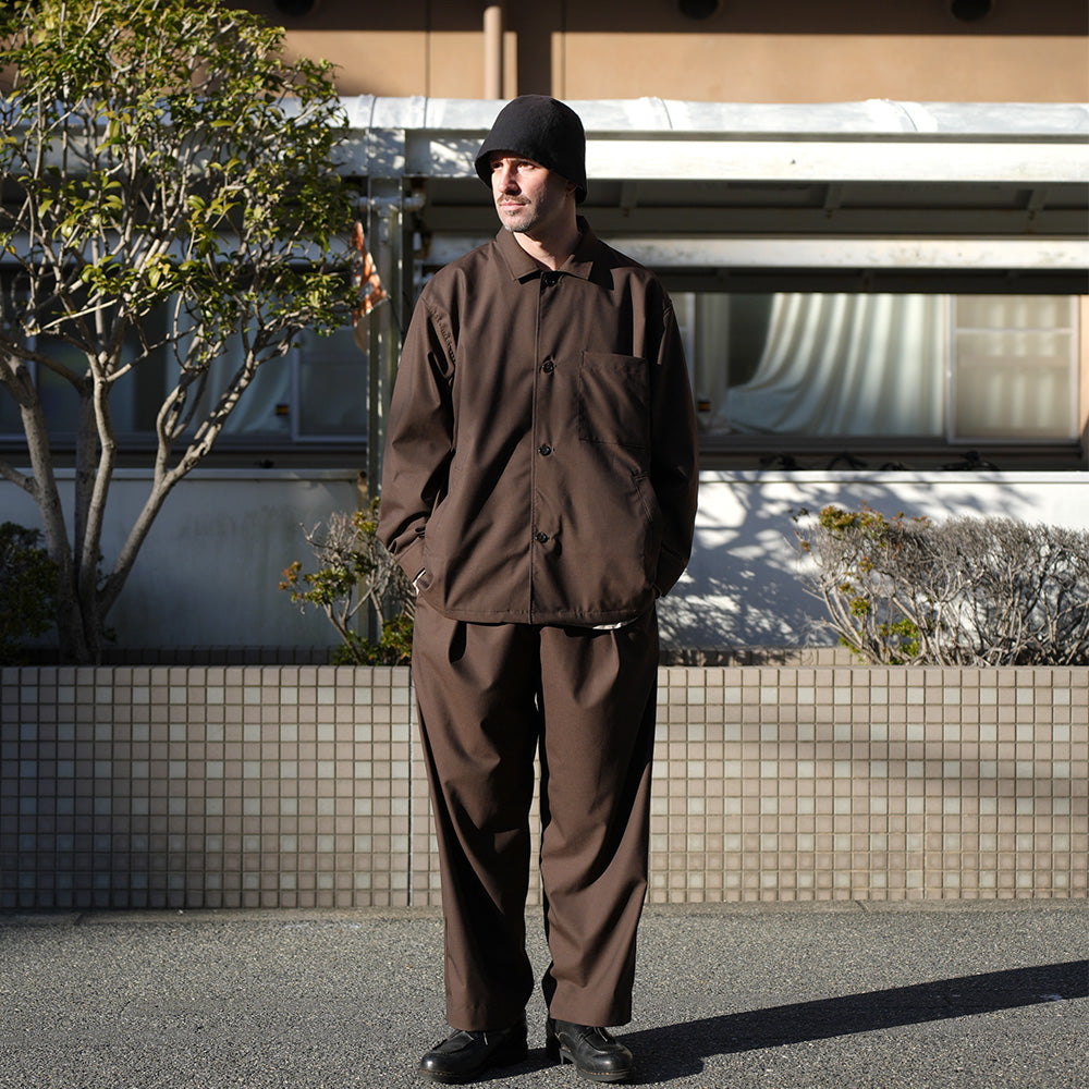 T/W/Rのストレッチトロ素材を使用したカバーオールジャケット。
