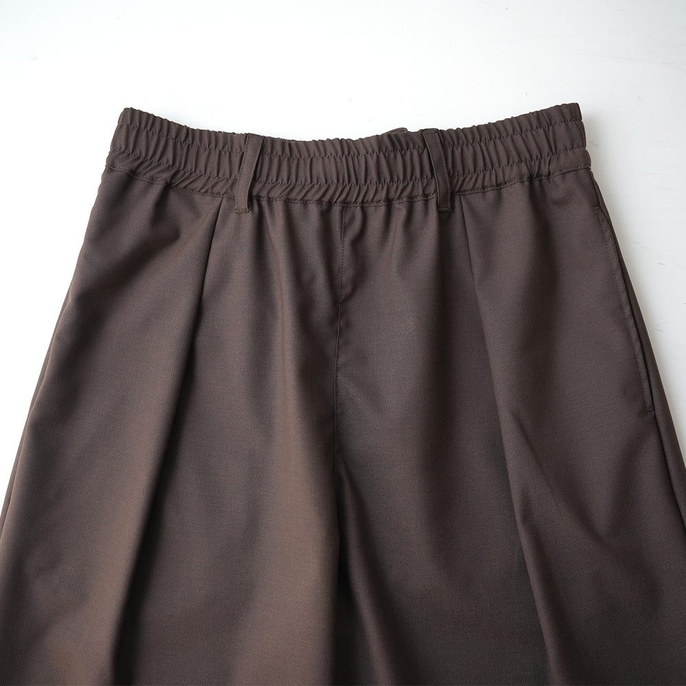 ウエストは総ゴム仕様にワンタックを施し、腰回りにゆとりを持たせたワイドシルエットが特徴。
