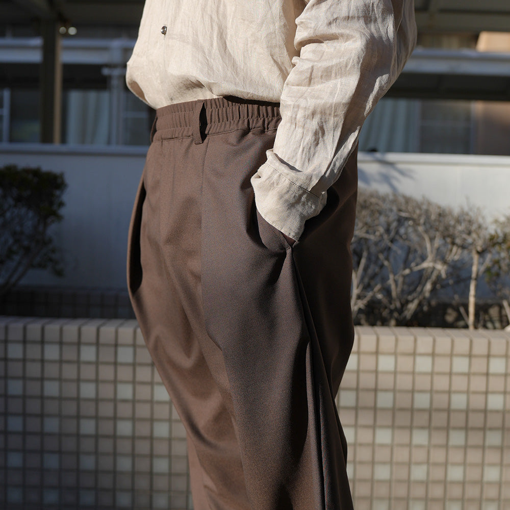 T/W/Rのストレッチトロ素材を使用したイージーパンツ。