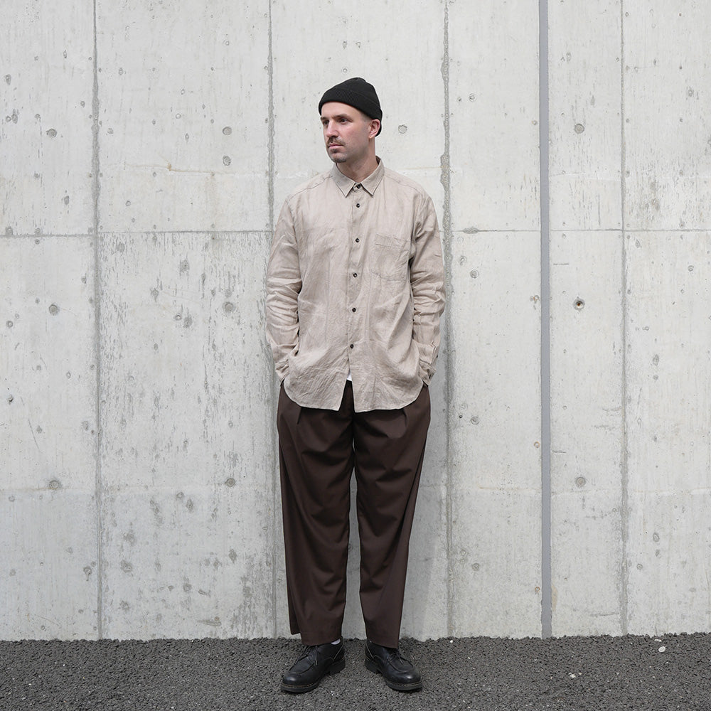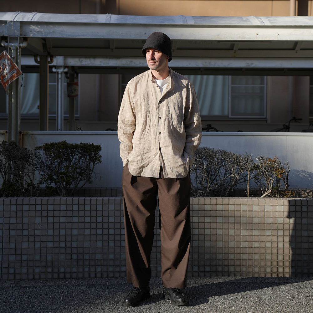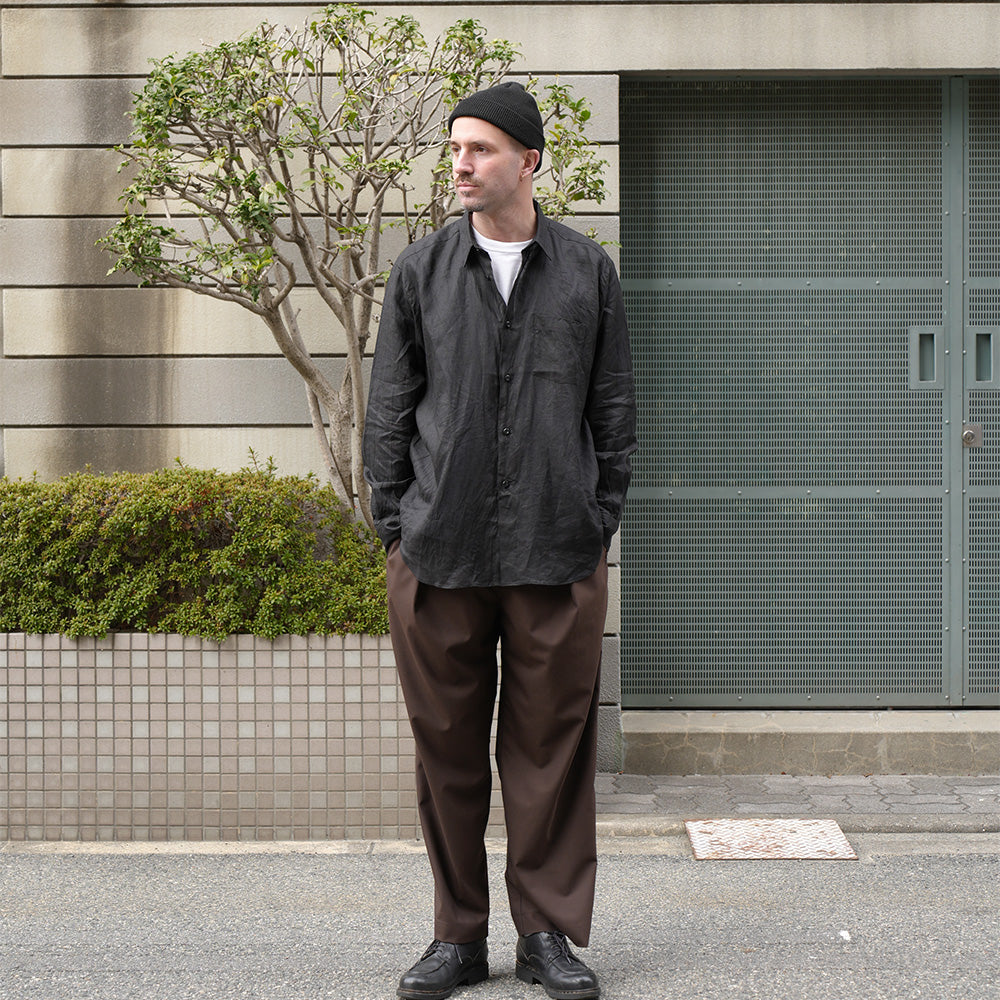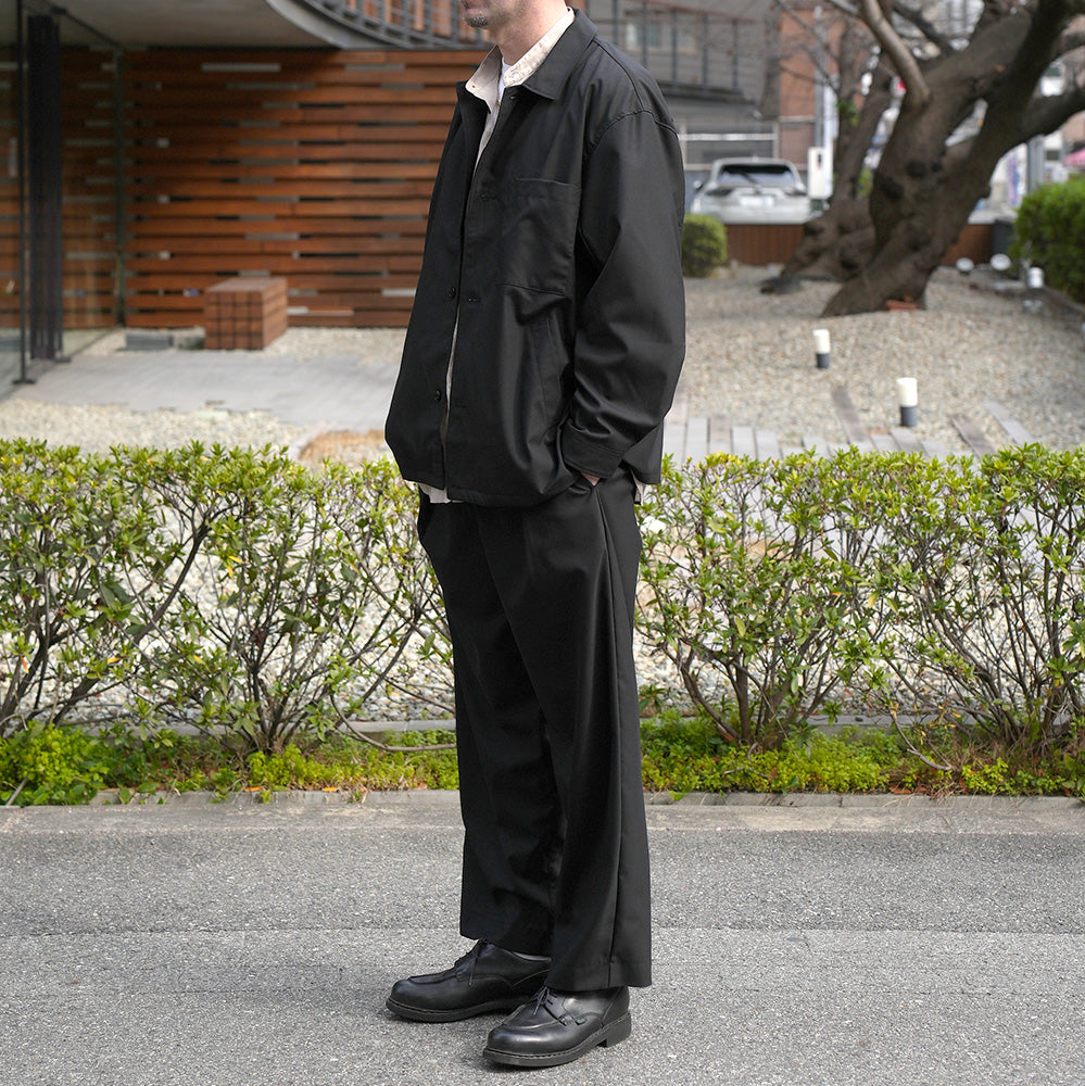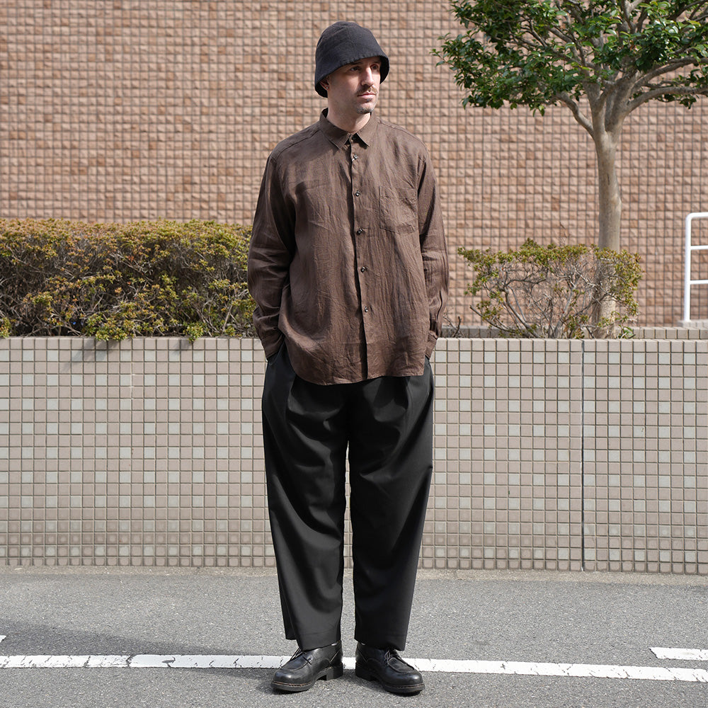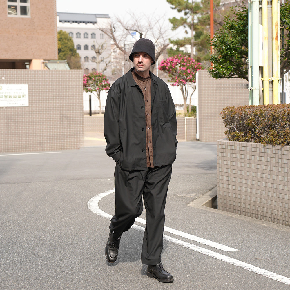 上品な光沢と落ち感を持ちながらも、夏場の洗濯回数が増えるシーンでも快適に着用できる、高い機能性が魅力の一着です。