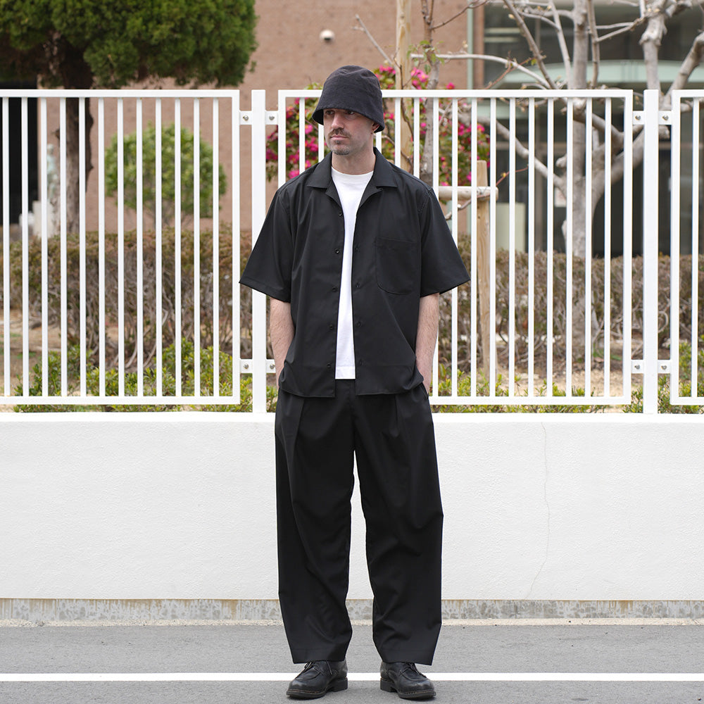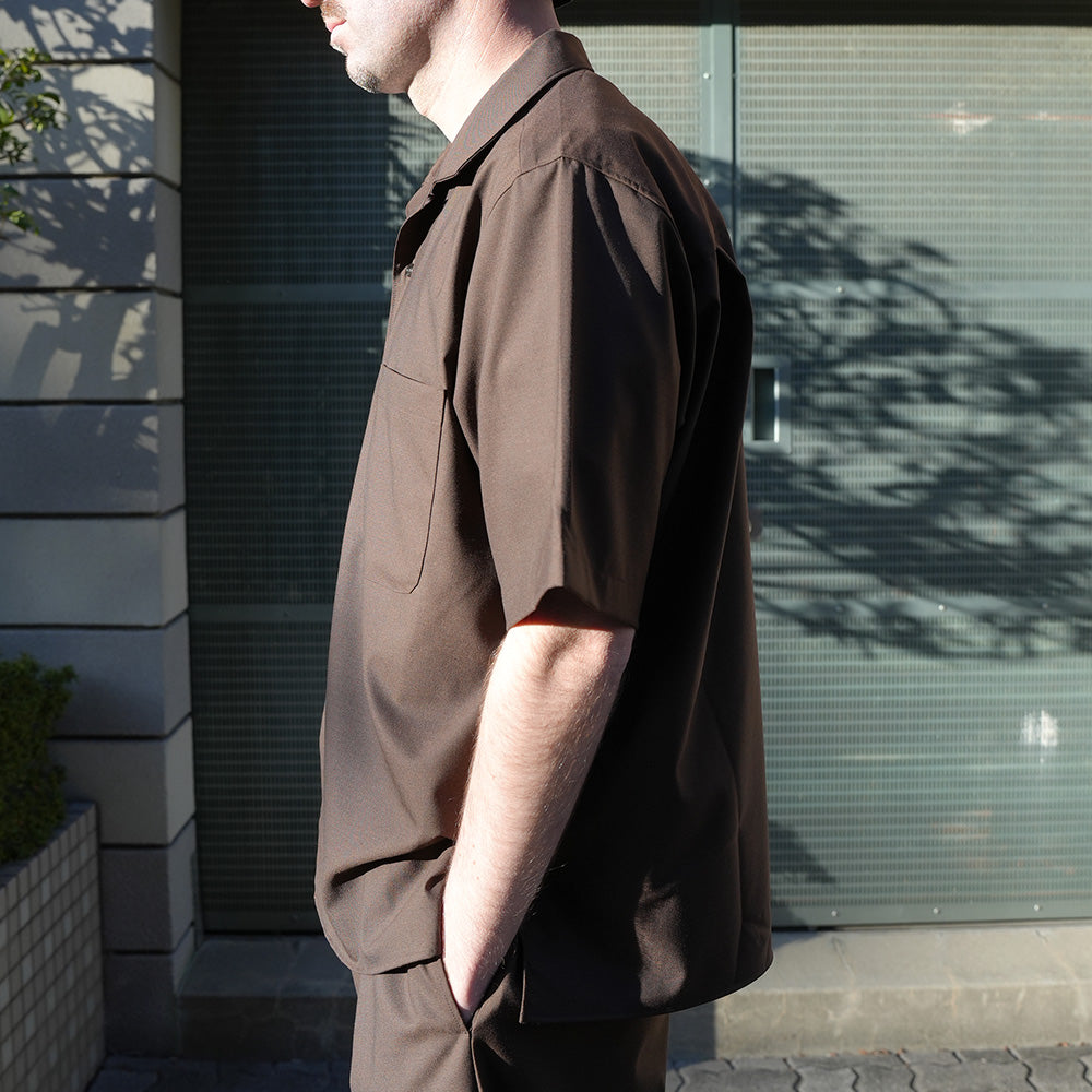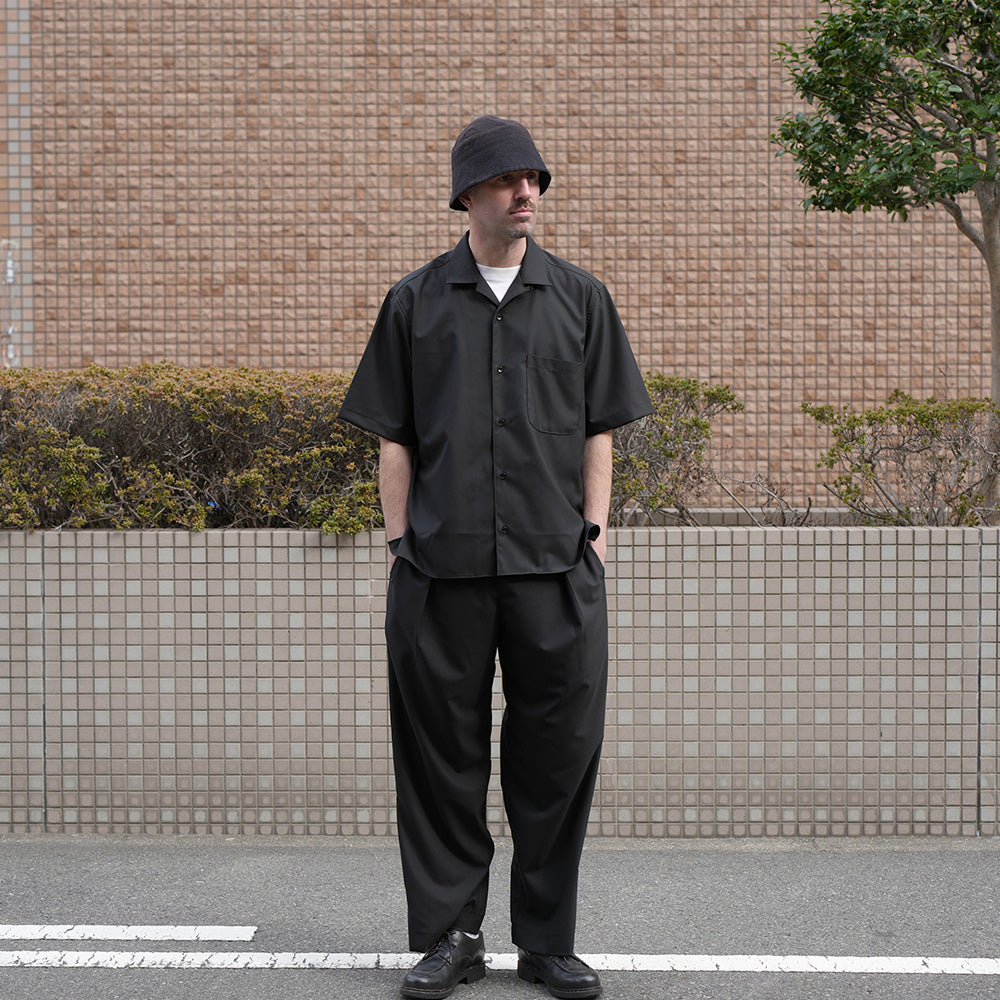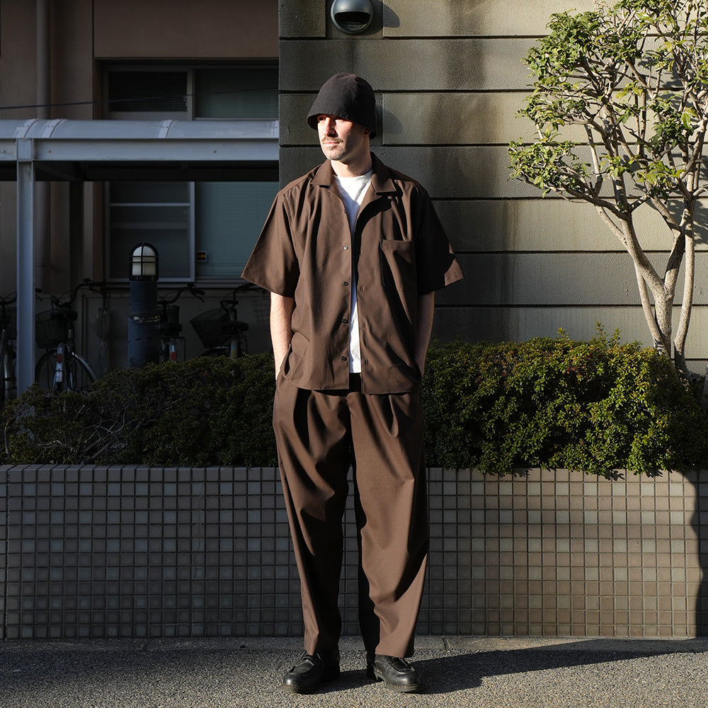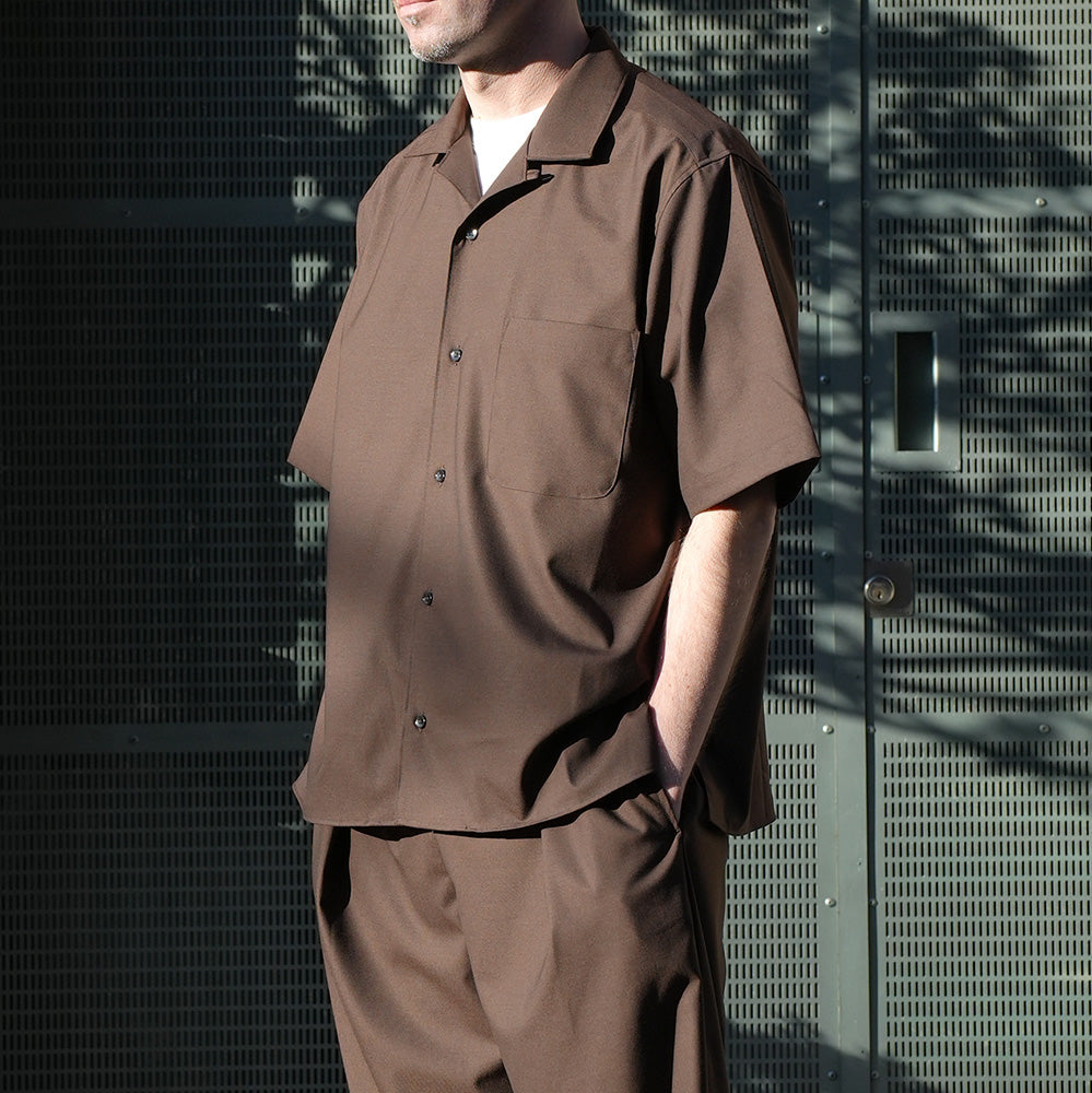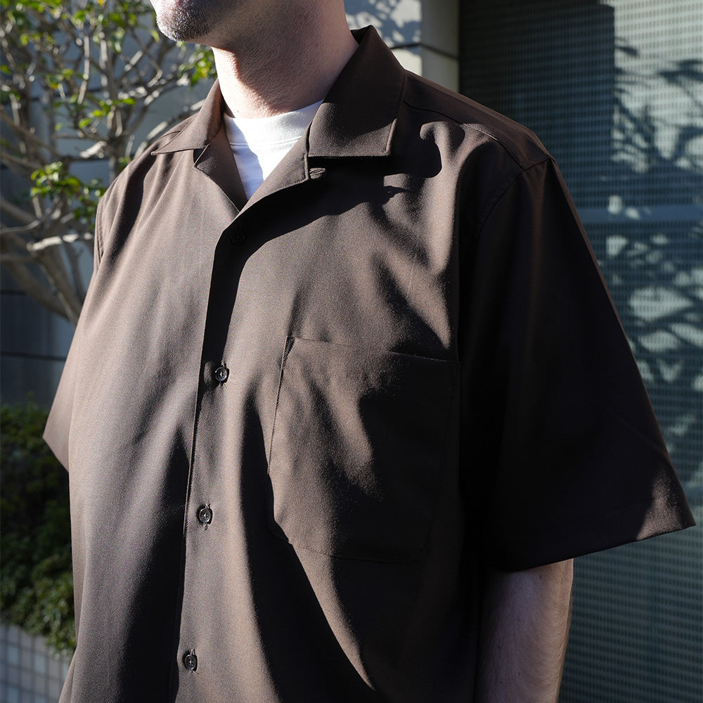 T/W/Rのストレッチトロ素材を使用した半袖オープンカラーシャツ。