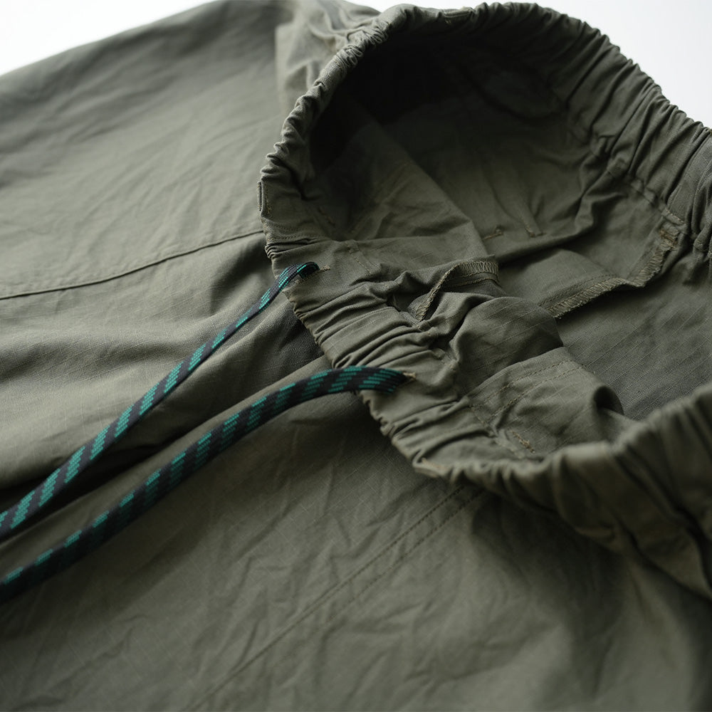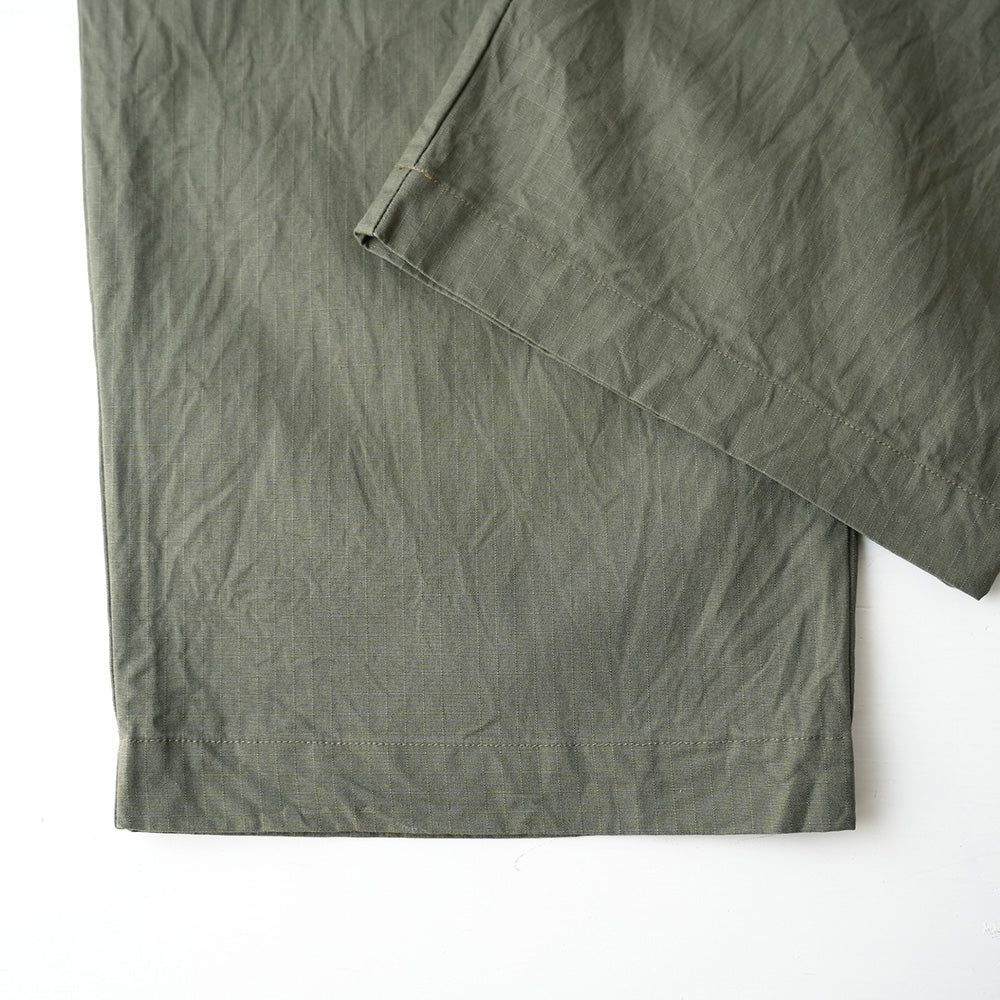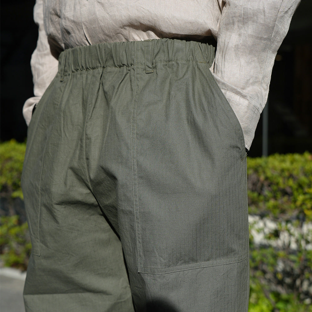 顔料染めのコットンリップストップ素材を使用したイージーパンツ。