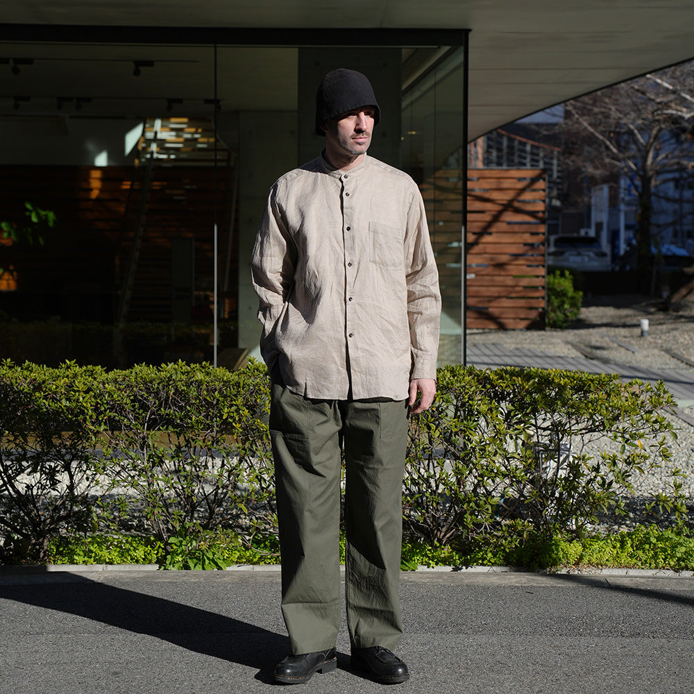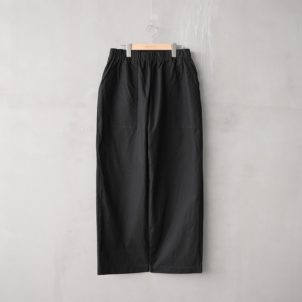 定番のワイドイージーパンツをベイカーパンツ風にアレンジし、丸みのあるユニセックスなシルエットに程よくミリタリー要素をプラスしました。