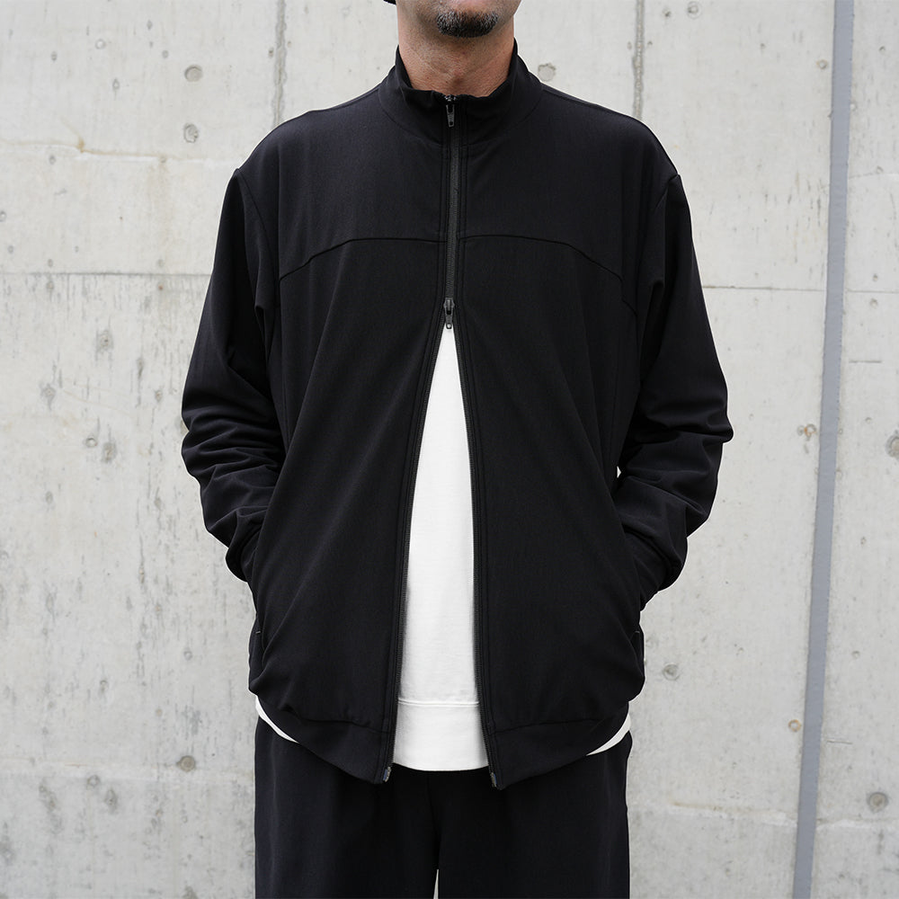 発熱する特殊な機能ジャージー素材LEOTHERMO®を使用した裏起毛ジャージー素材のトラックジャケット。