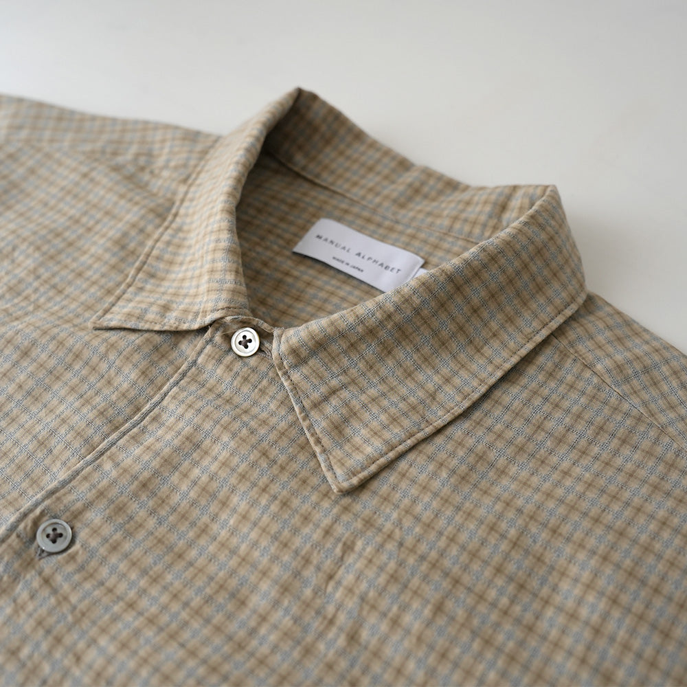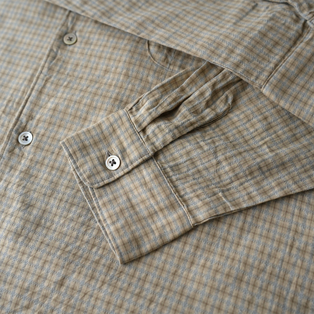 ミニチェック柄にドビー織りを加えることで、奥行きと表情を持たせた素材を使用したワンナップカラーシャツ。