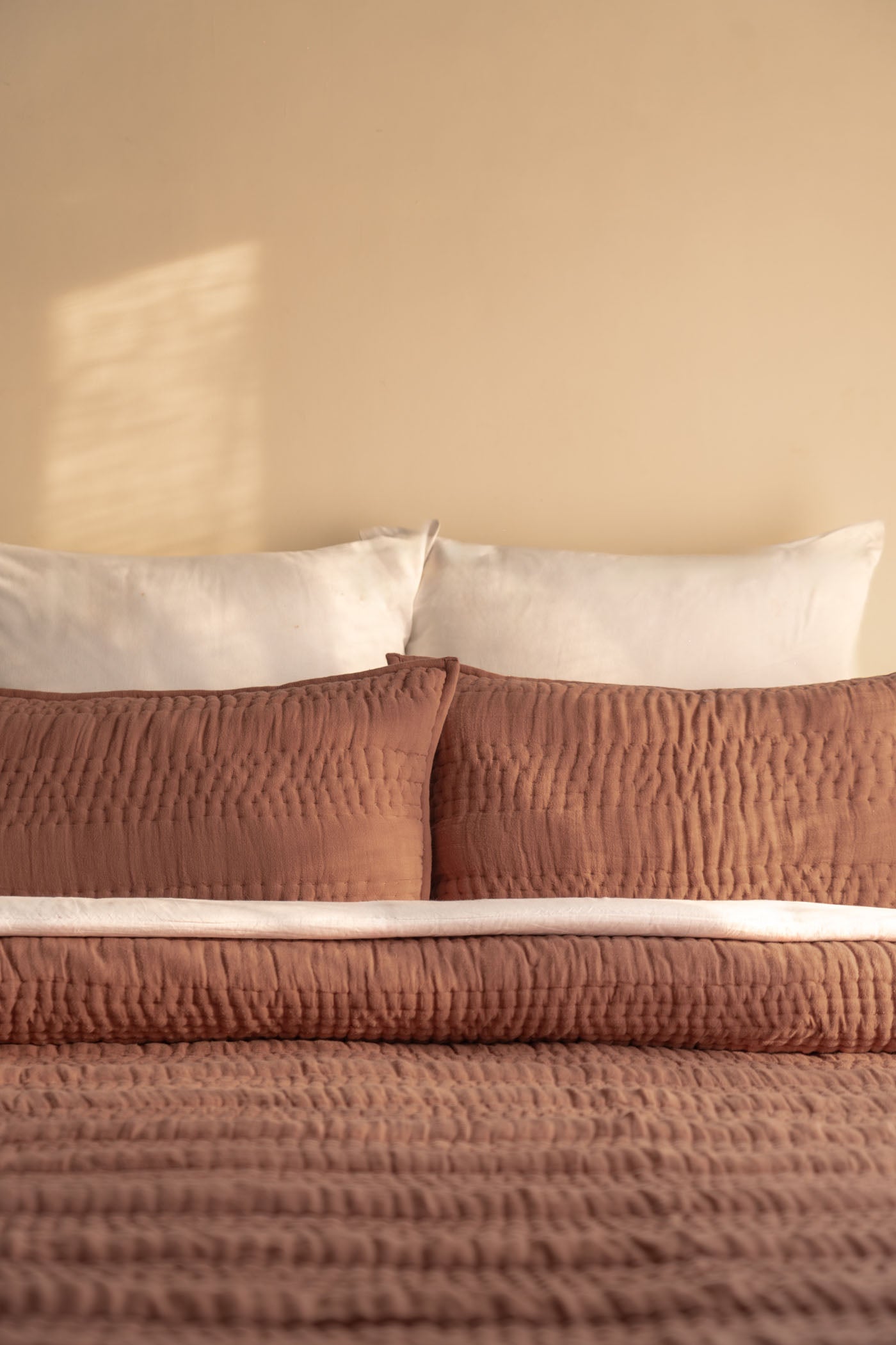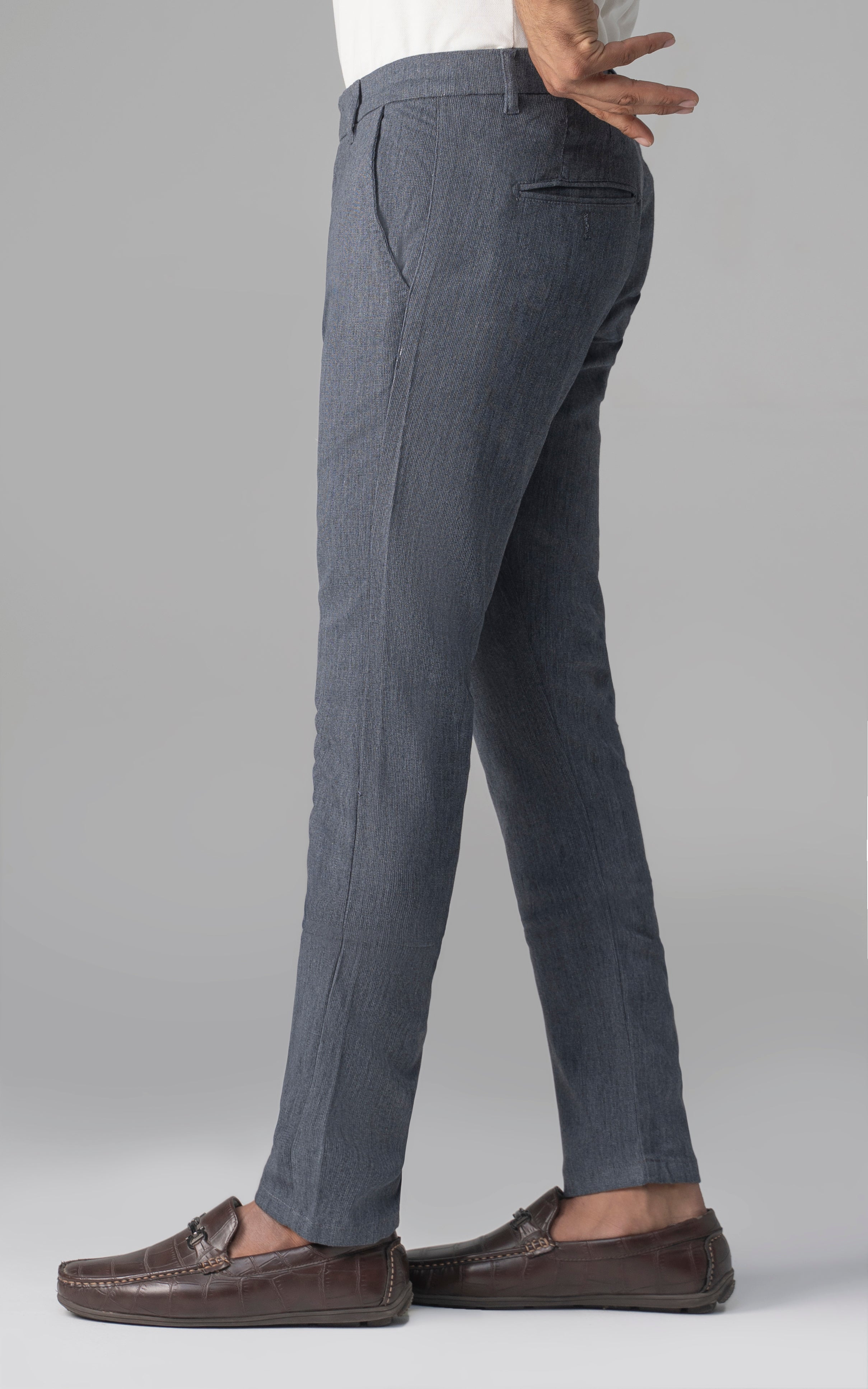 highlights the subtle check pattern and the texture of the fabric.
