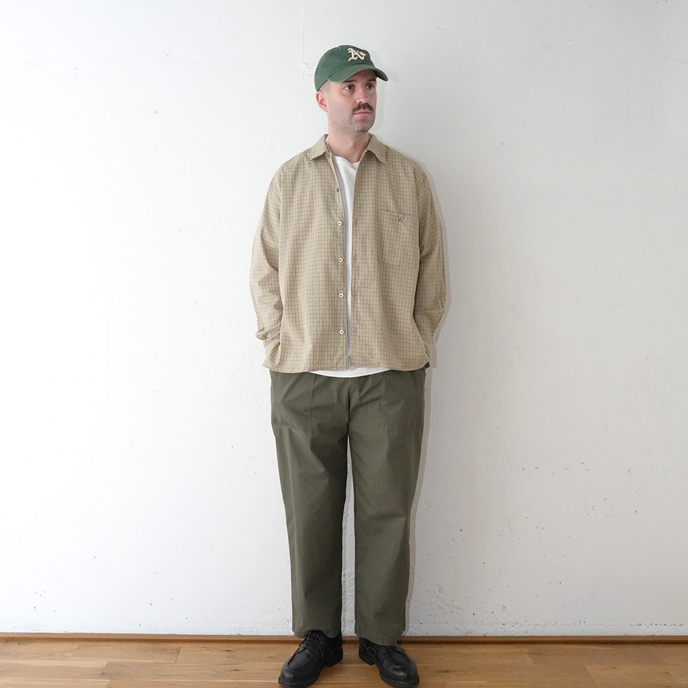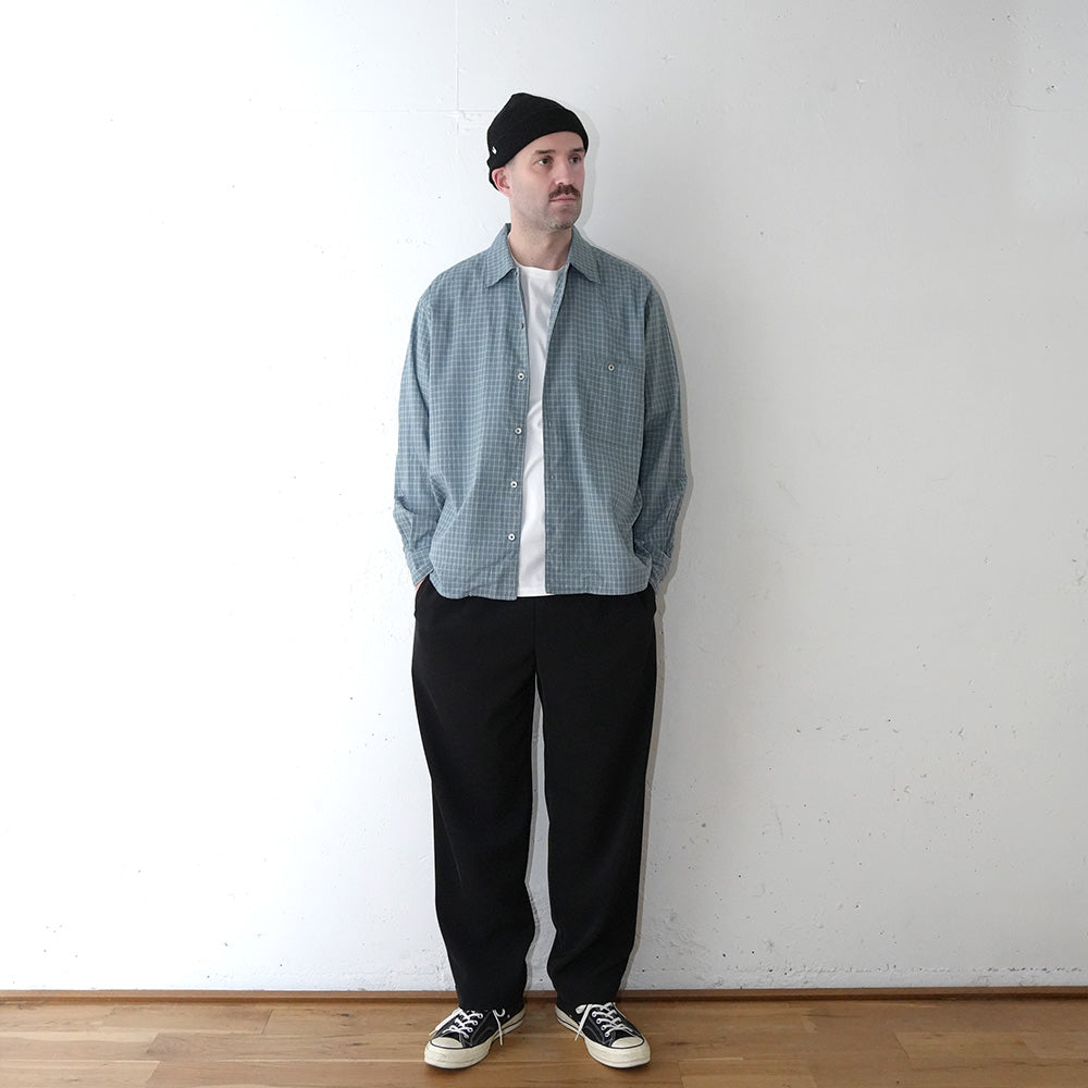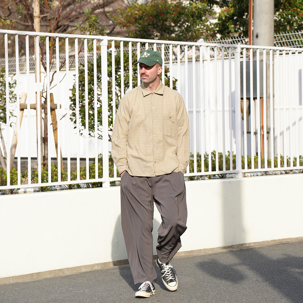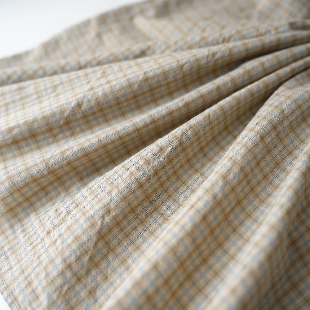 さりげないチェック柄と素材の表情が活きる、汎用性の高い一着です。